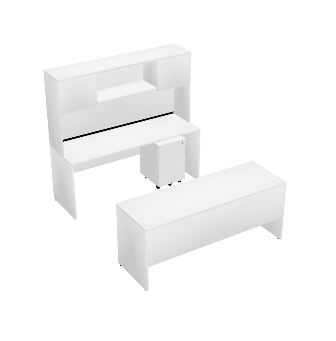 Office Parallel Desk Credenza Desk + Wooden Mobile Drawers + Hutch
