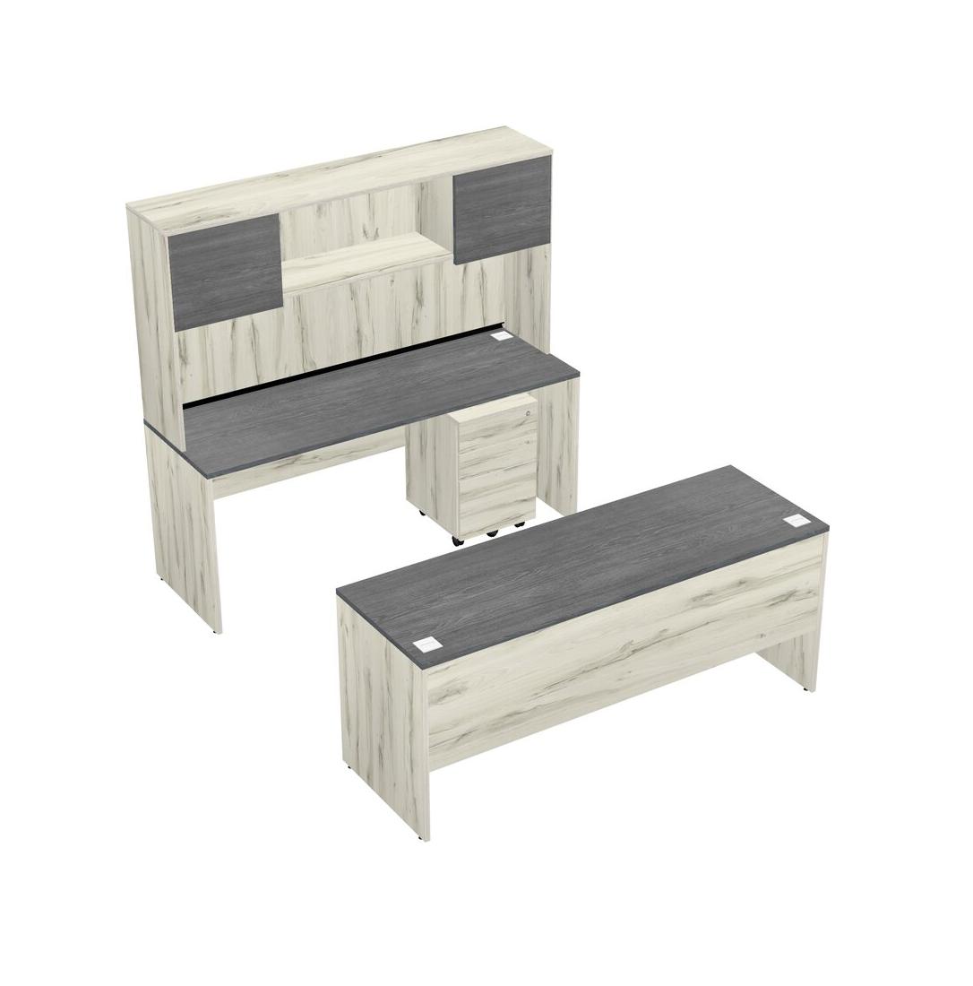 Office Parallel Desk Credenza Desk + Wooden Mobile Drawers + Hutch