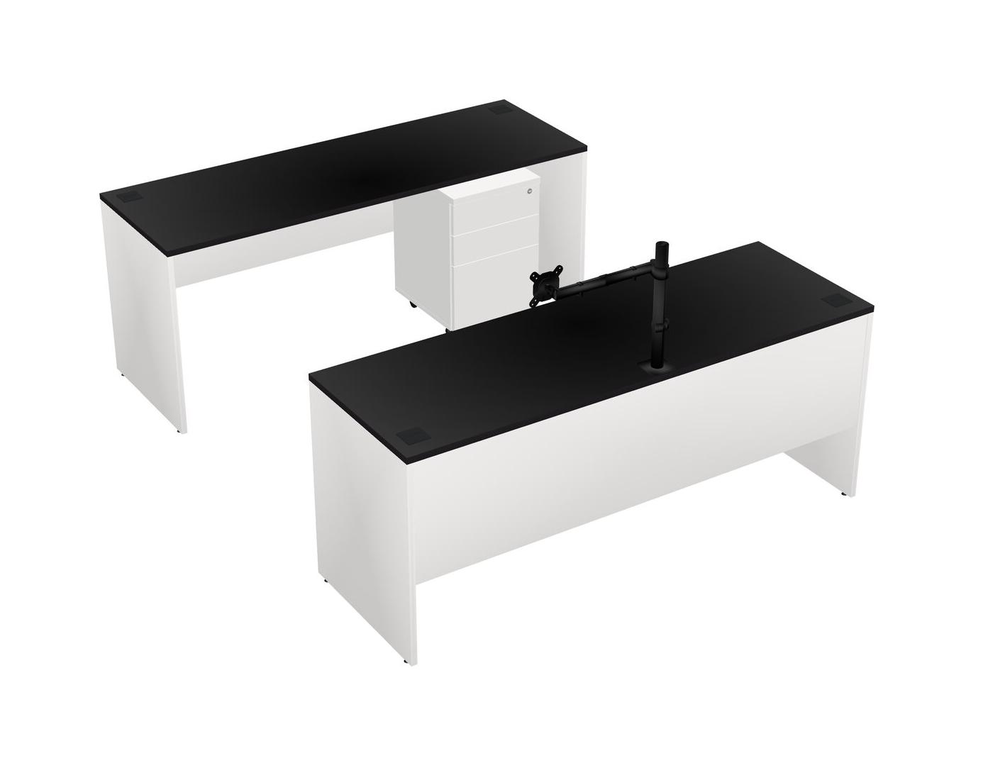 Office Parallel Desk Credenza Desk + Wooden Mobile Drawers + Monitor Arm (single Arm)