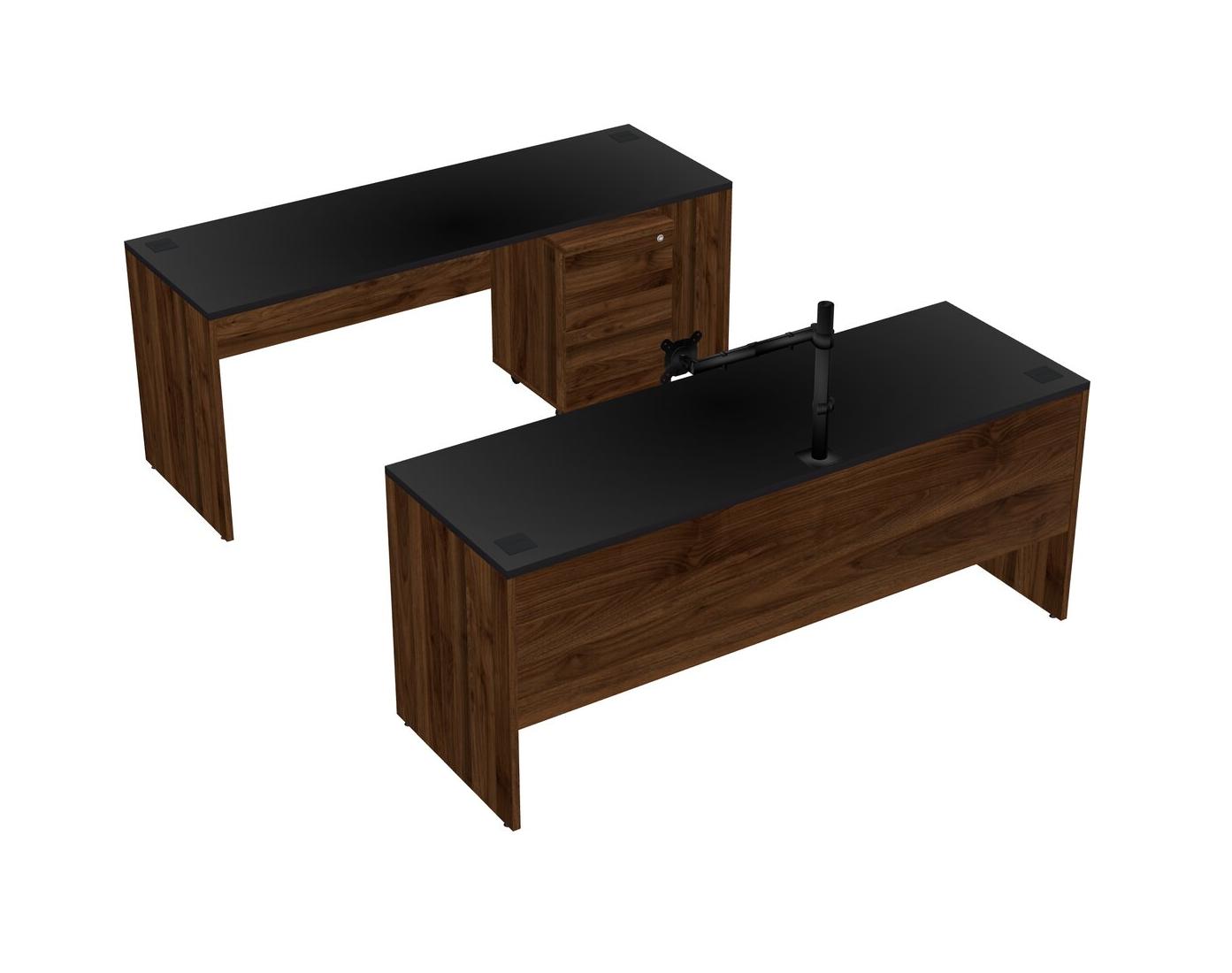 Office Parallel Desk Credenza Desk + Wooden Mobile Drawers + Monitor Arm (single Arm)