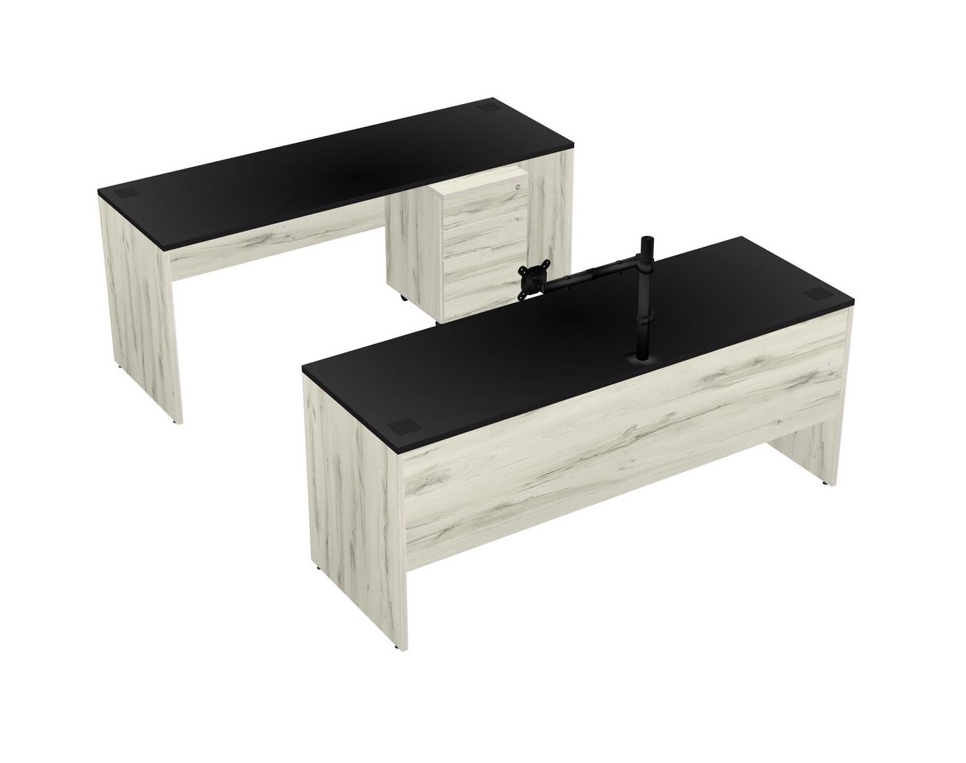 Office Parallel Desk Credenza Desk + Wooden Mobile Drawers + Monitor Arm (single Arm)