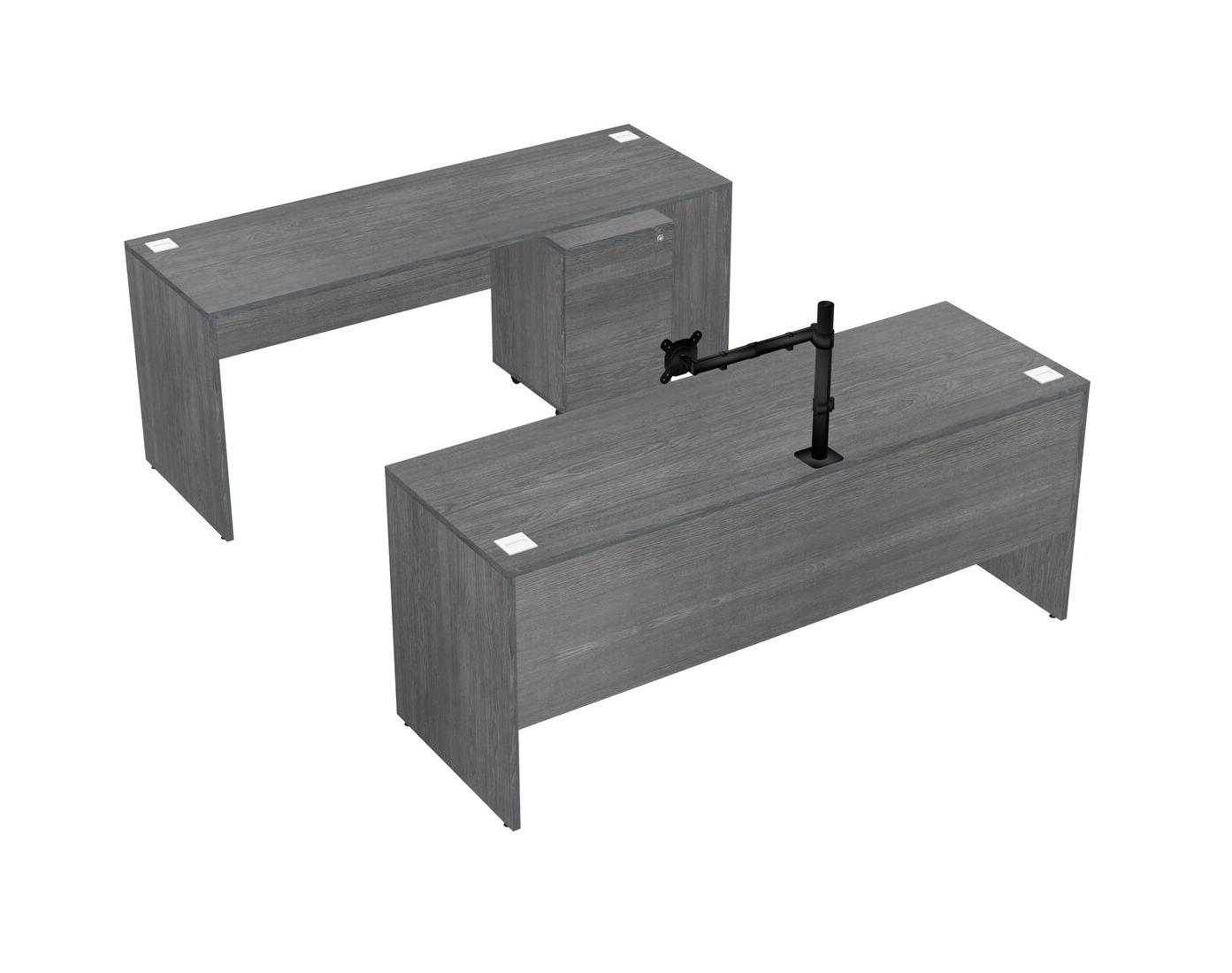 Office Parallel Desk Credenza Desk + Wooden Mobile Drawers + Monitor Arm (single Arm)