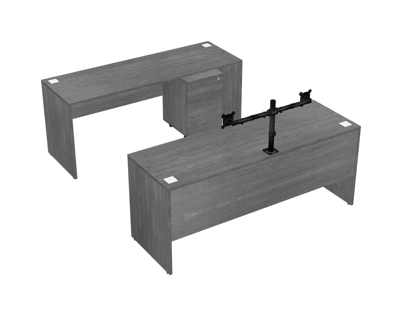 Office Parallel Desk Credenza Desk + Wooden Mobile Drawers + Monitor Arm (double Arms)