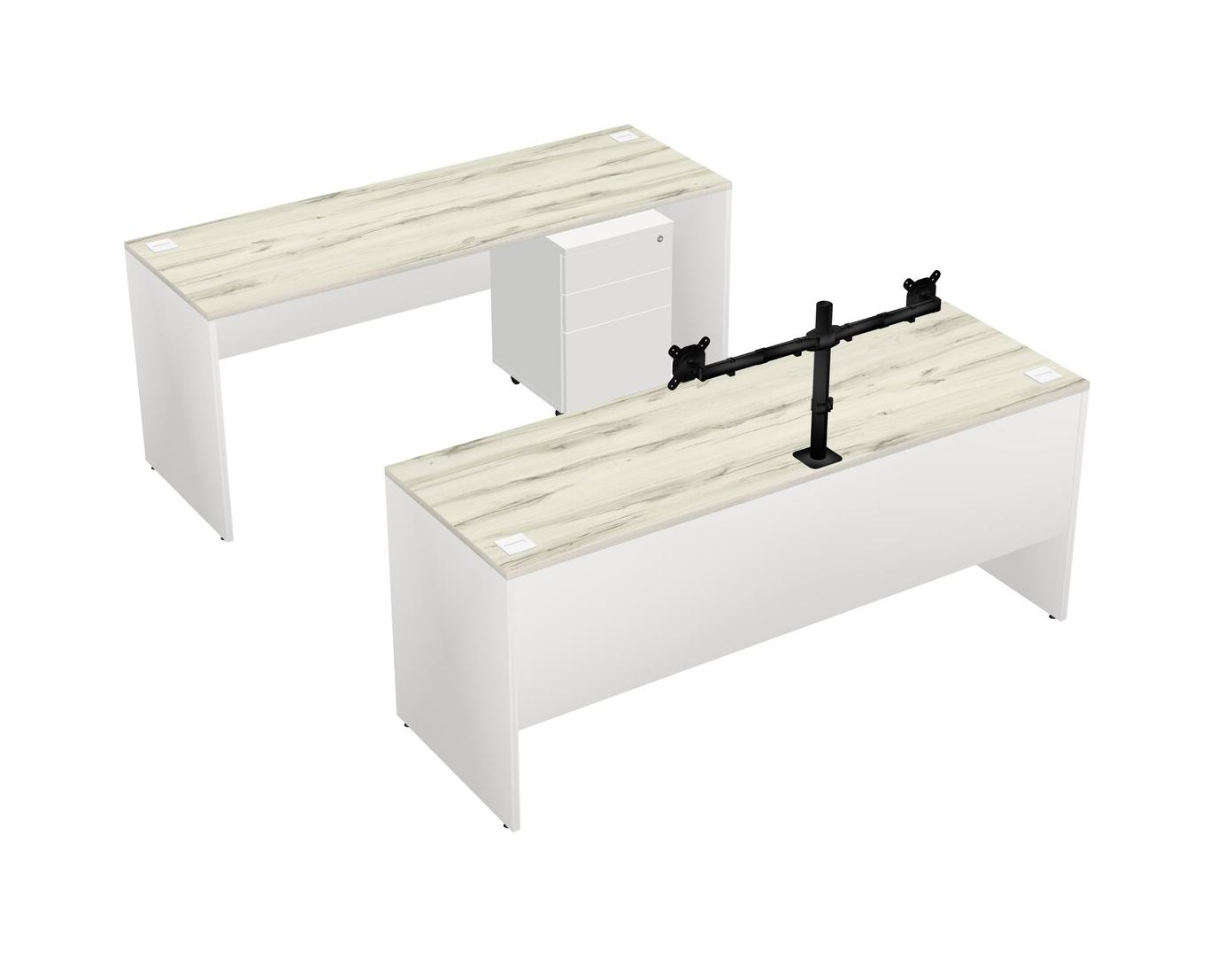 Office Parallel Desk Credenza Desk + Wooden Mobile Drawers + Monitor Arm (double Arms)