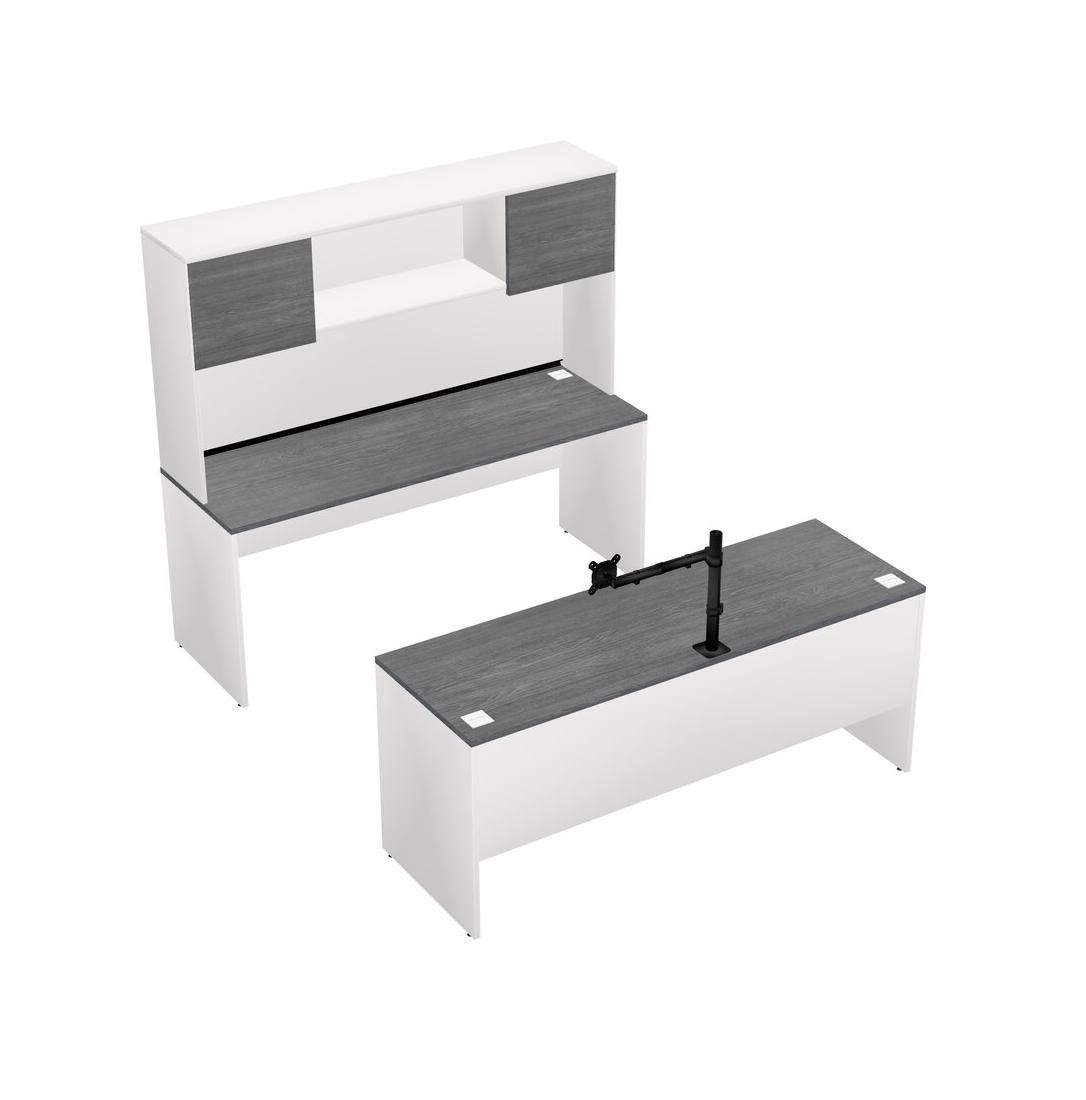 Office Parallel Desk Credenza Desk + Hutch + Monitor Arm (single Arm)