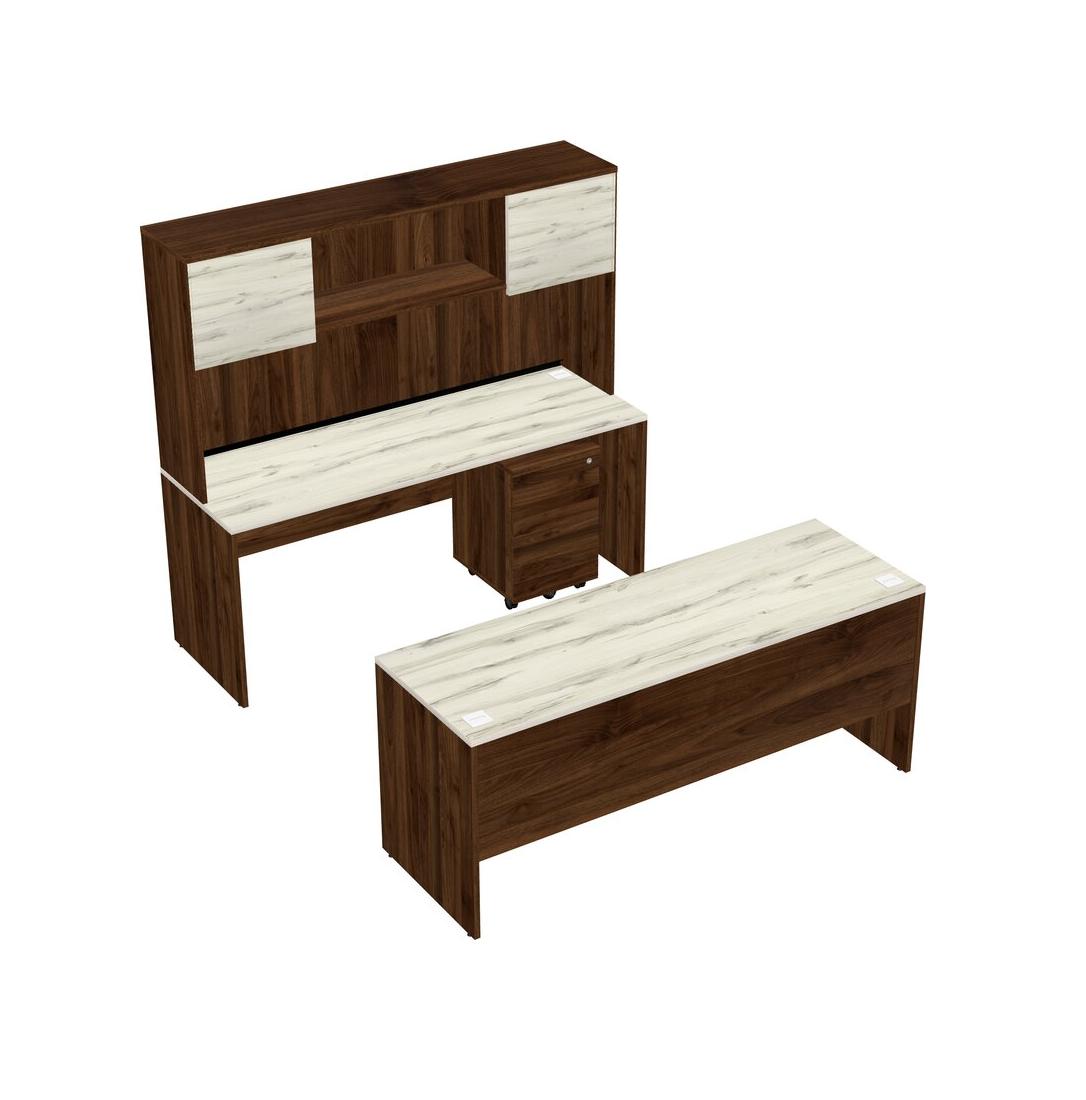 Office Parallel Desk Credenza Desk + Wooden Mobile Drawers + Hutch