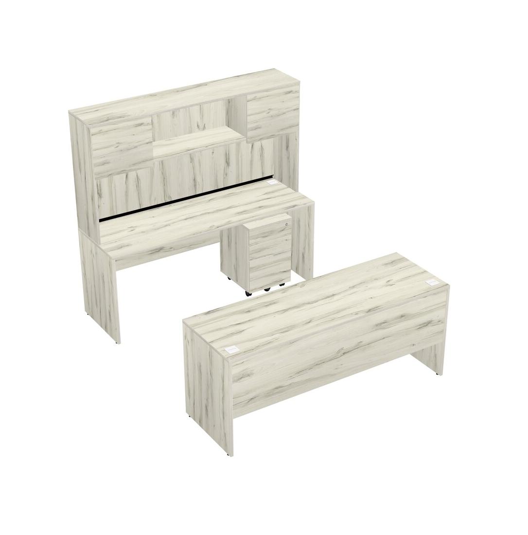 Office Parallel Desk Credenza Desk + Wooden Mobile Drawers + Hutch