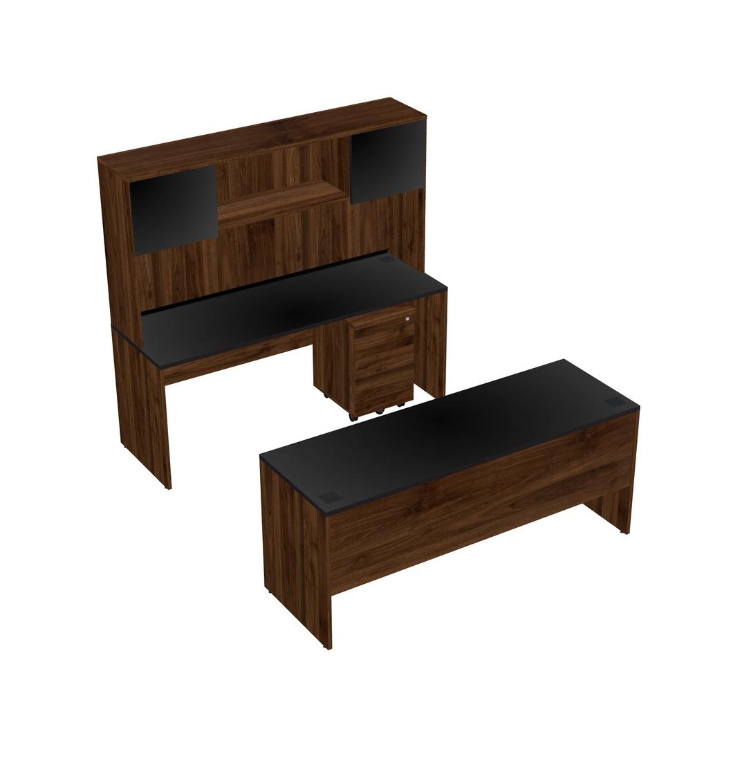 Office Parallel Desk Credenza Desk + Wooden Mobile Drawers + Hutch