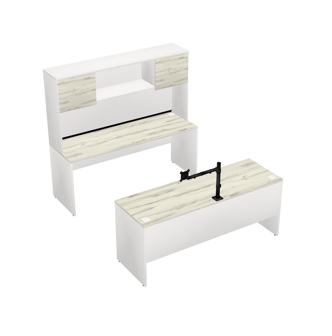 Office Parallel Desk Credenza Desk + Hutch + Monitor Arm (single Arm)