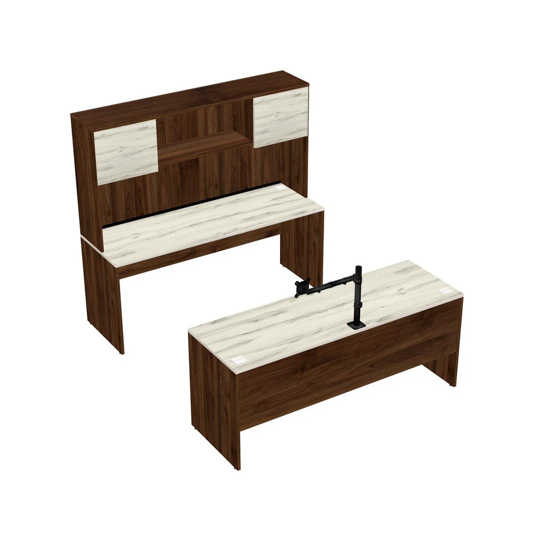 Office Parallel Desk Credenza Desk + Hutch + Monitor Arm (single Arm)