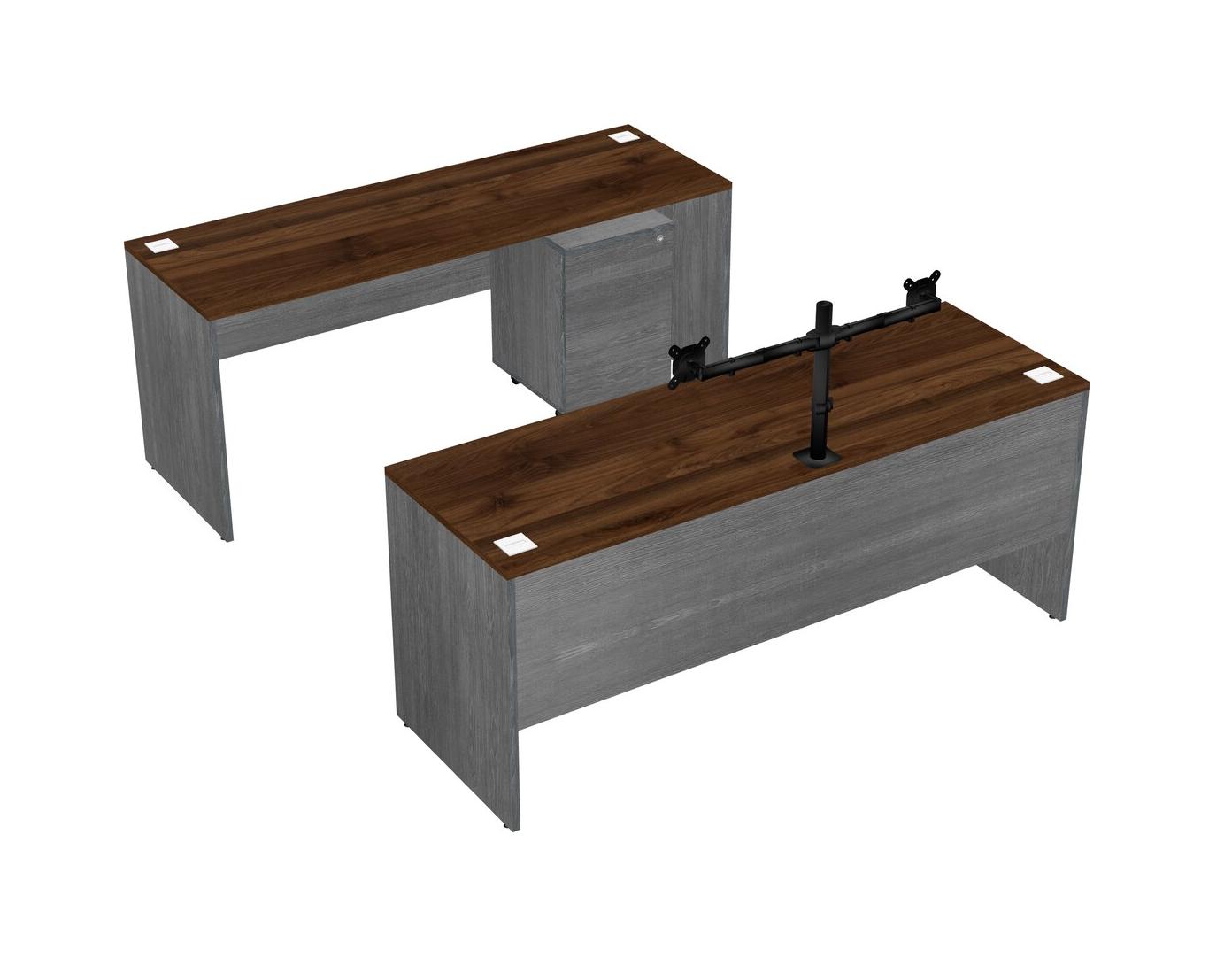 Office Parallel Desk Credenza Desk + Wooden Mobile Drawers + Monitor Arm (double Arms)