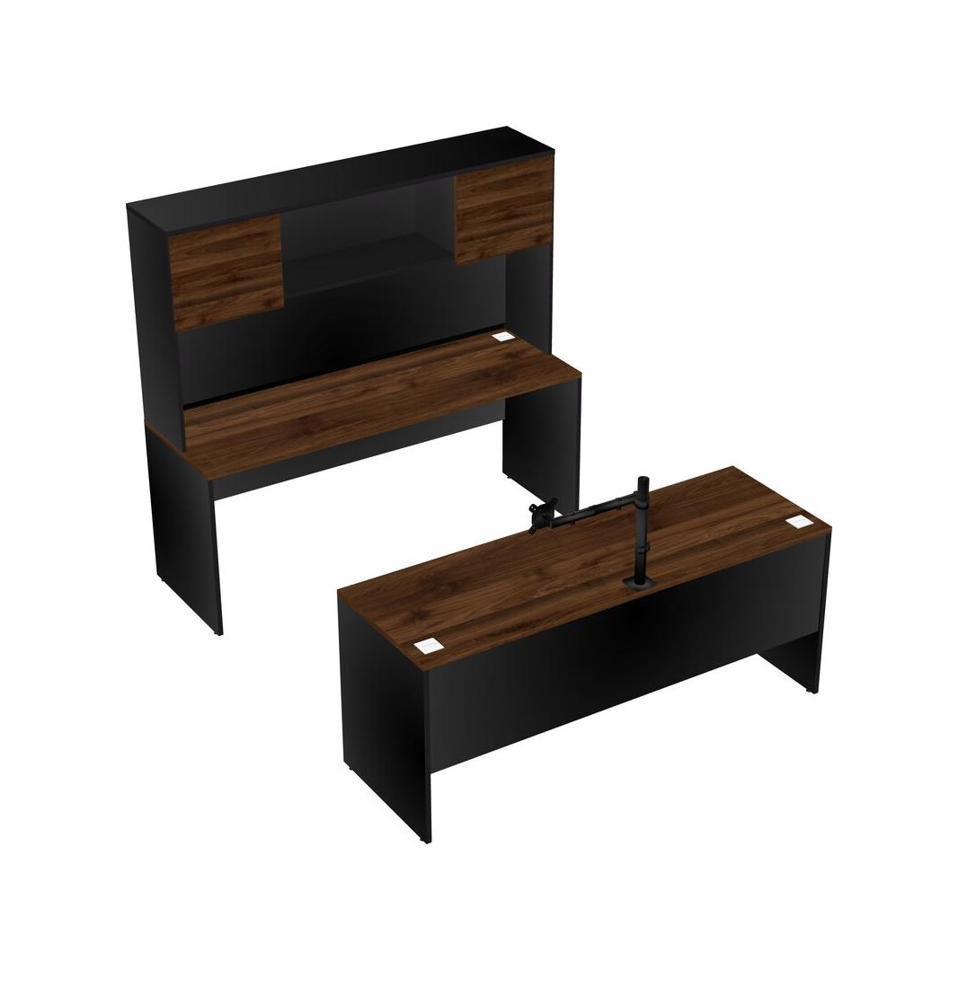 Office Parallel Desk Credenza Desk + Hutch + Monitor Arm (single Arm)
