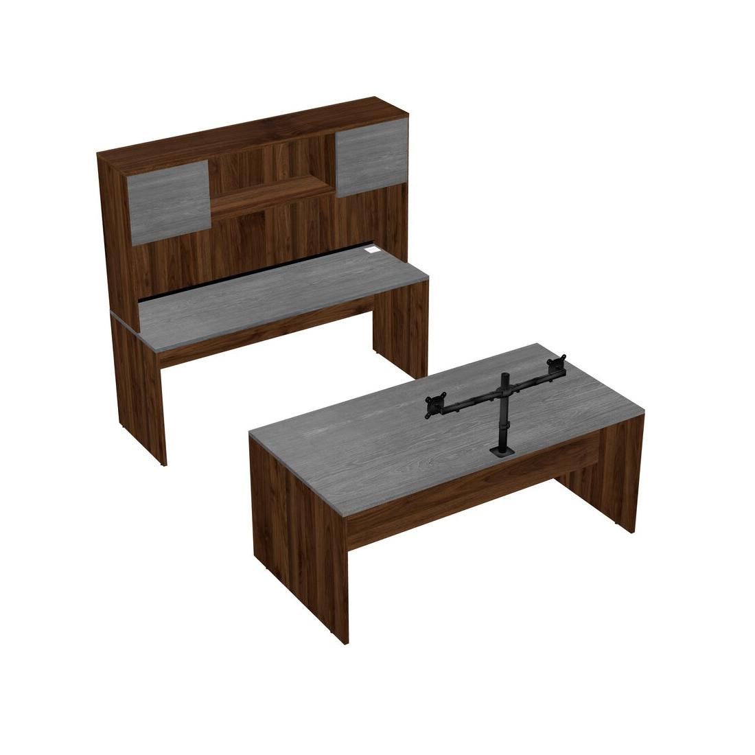 Office Parallel Desk Credenza Desk + Hutch + Monitor Arm (double Arms)