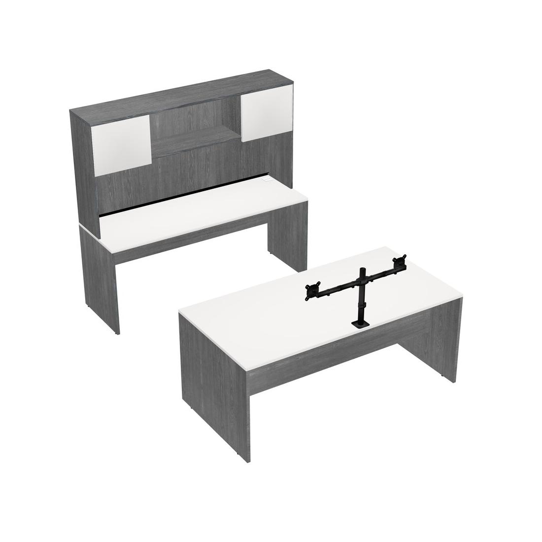 Office Parallel Desk Credenza Desk + Hutch + Monitor Arm (double Arms)