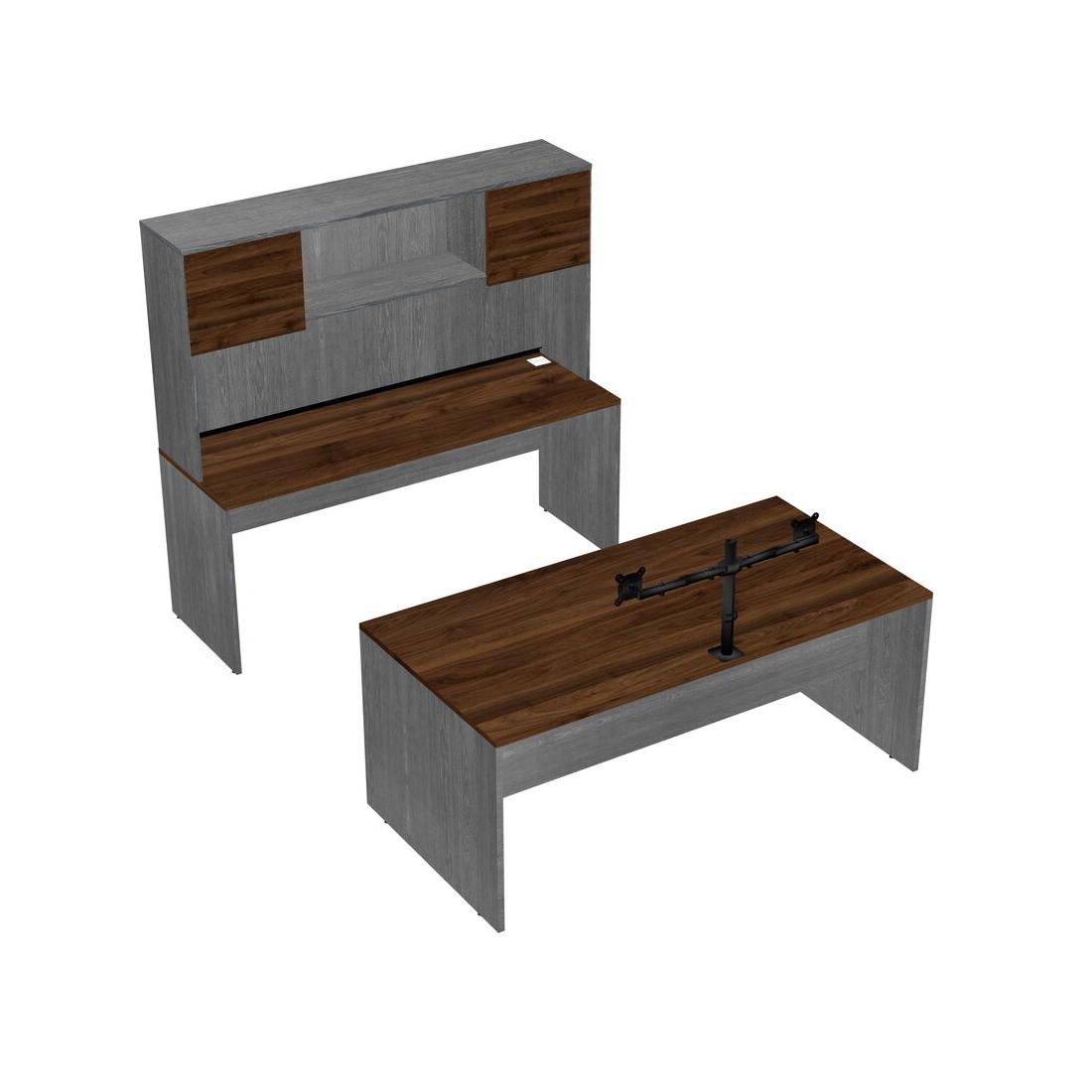 Office Parallel Desk Credenza Desk + Hutch + Monitor Arm (double Arms)