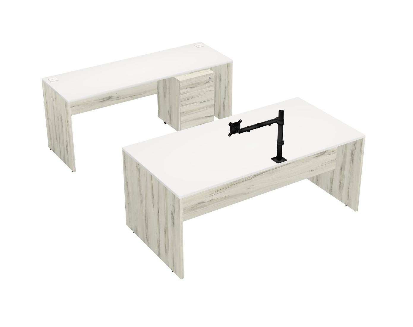 Office Parallel Desk Credenza Desk + Wooden Mobile Drawers + Monitor Arm (single Arm)