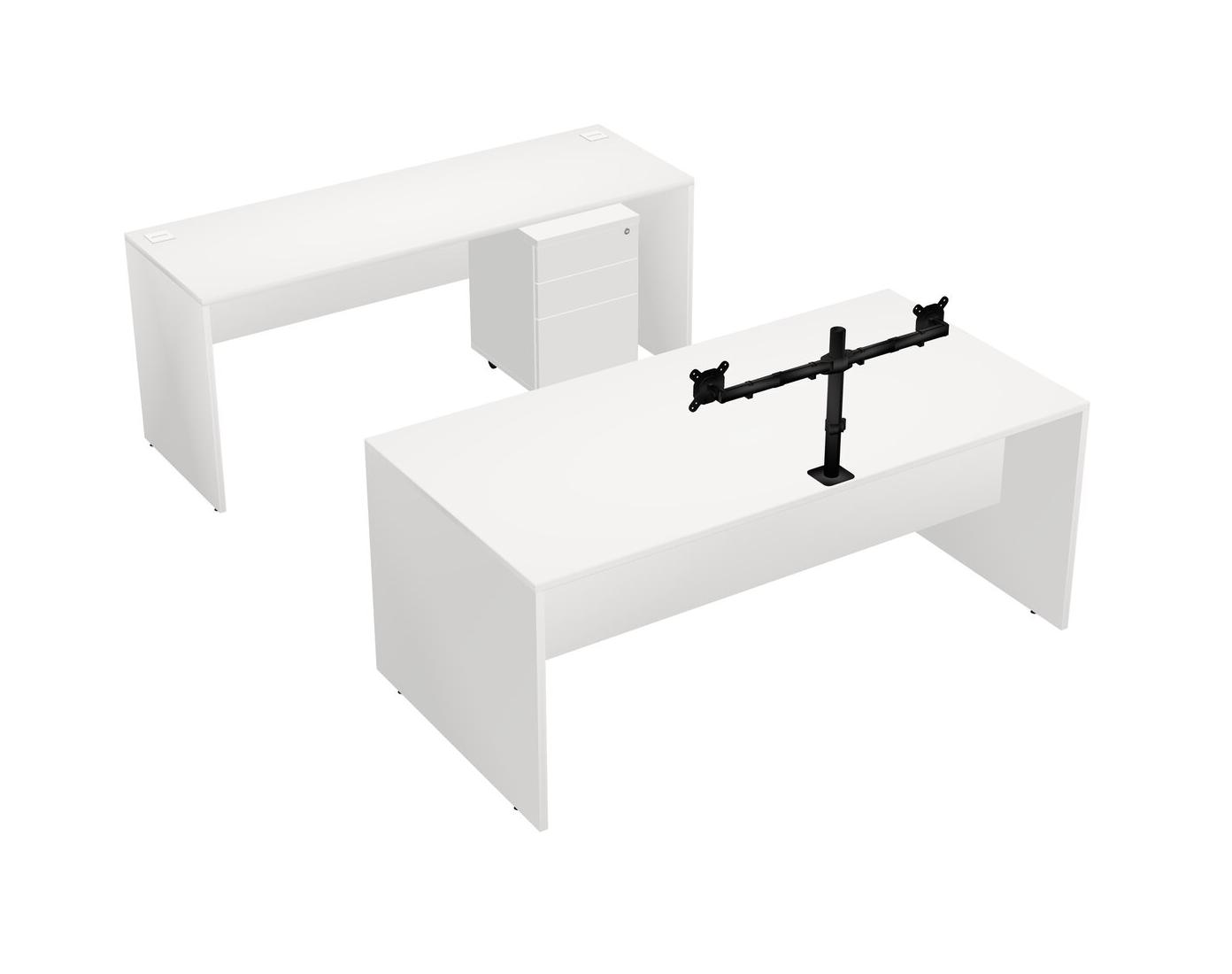 Office Parallel Desk Credenza Desk + Wooden Mobile Drawers + Monitor Arm (double Arms)
