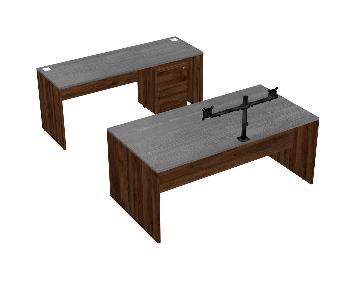 Office Parallel Desk Credenza Desk + Wooden Mobile Drawers + Monitor Arm (double Arms)