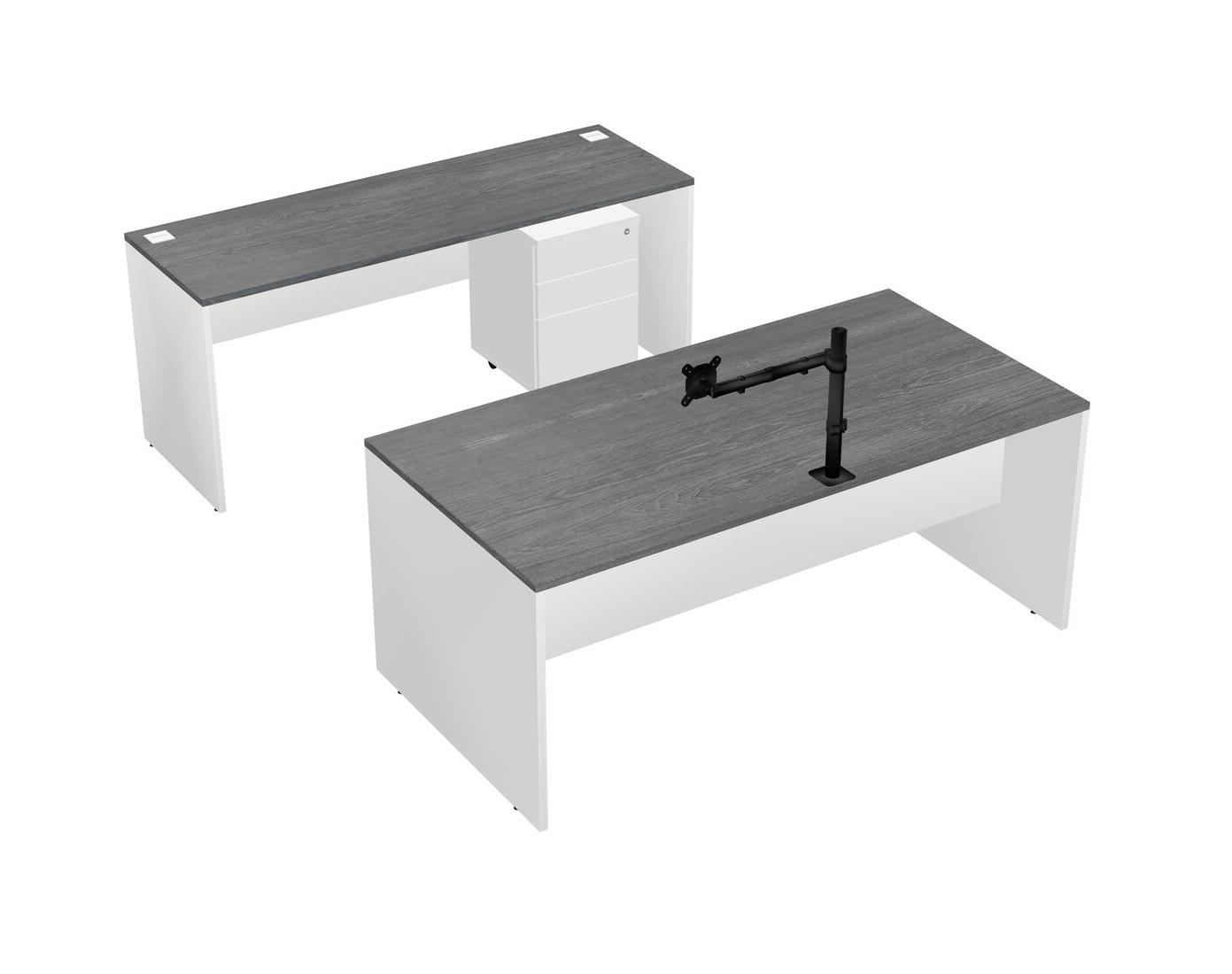 Office Parallel Desk Credenza Desk + Wooden Mobile Drawers + Monitor Arm (single Arm)