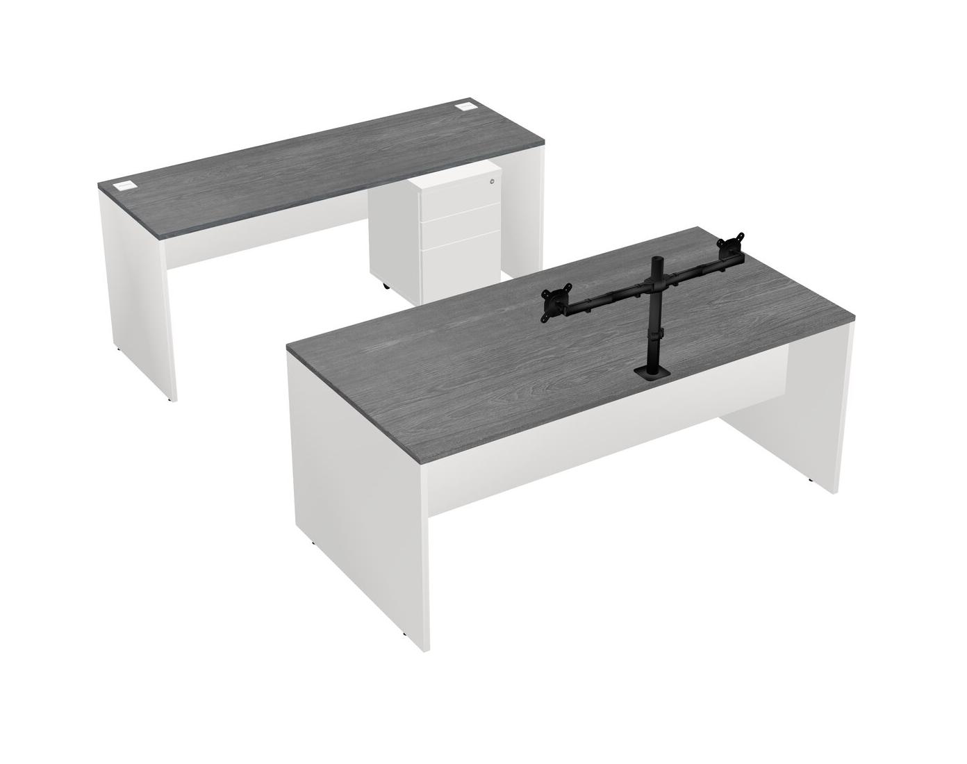 Office Parallel Desk Credenza Desk + Wooden Mobile Drawers + Monitor Arm (double Arms)