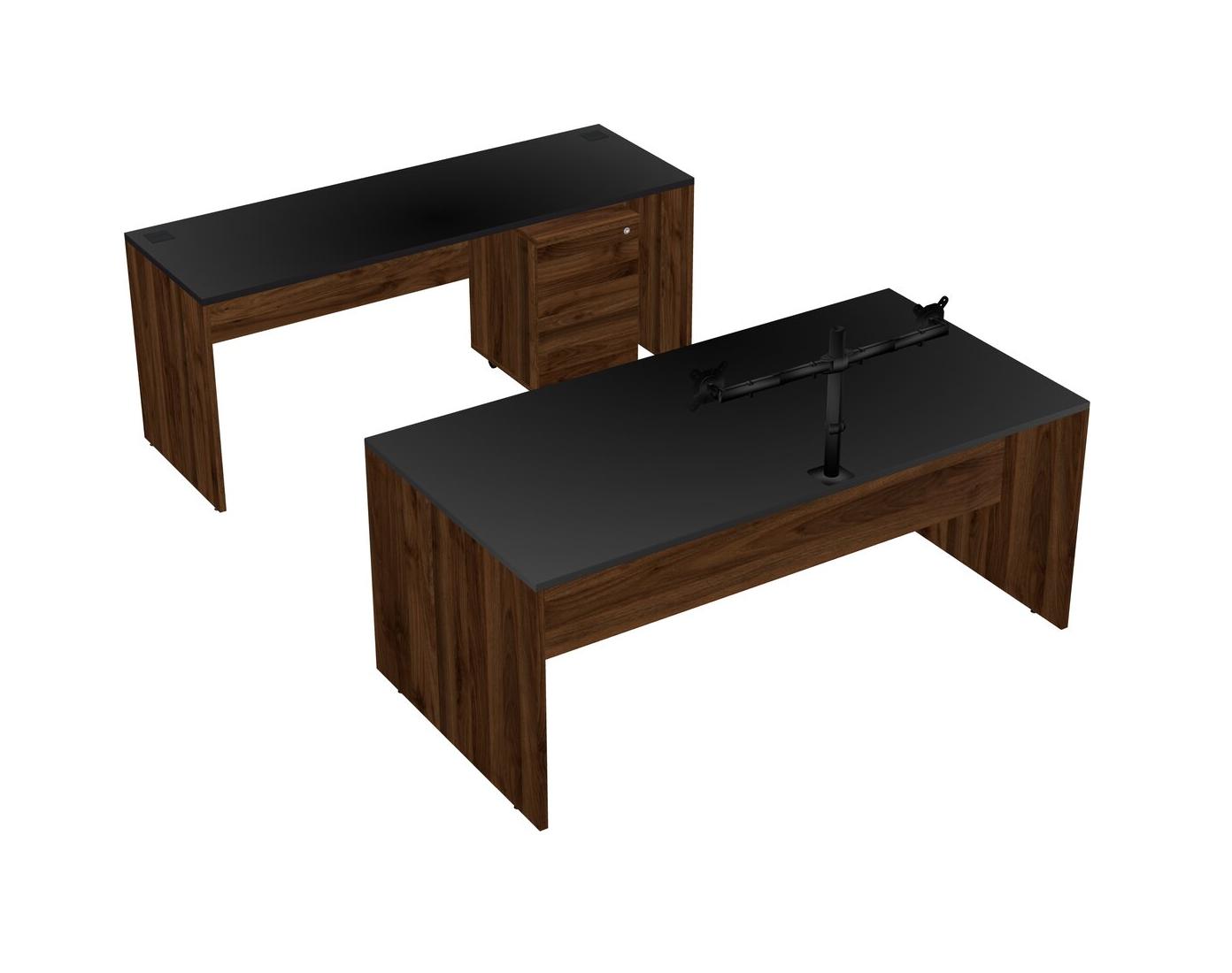 Office Parallel Desk Credenza Desk + Wooden Mobile Drawers + Monitor Arm (double Arms)
