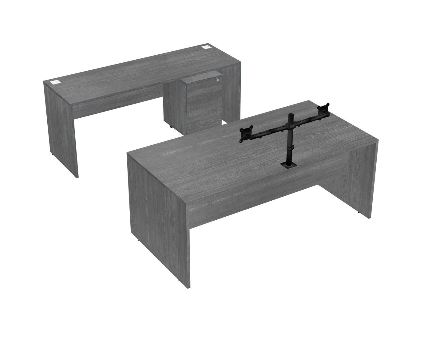 Office Parallel Desk Credenza Desk + Wooden Mobile Drawers + Monitor Arm (double Arms)