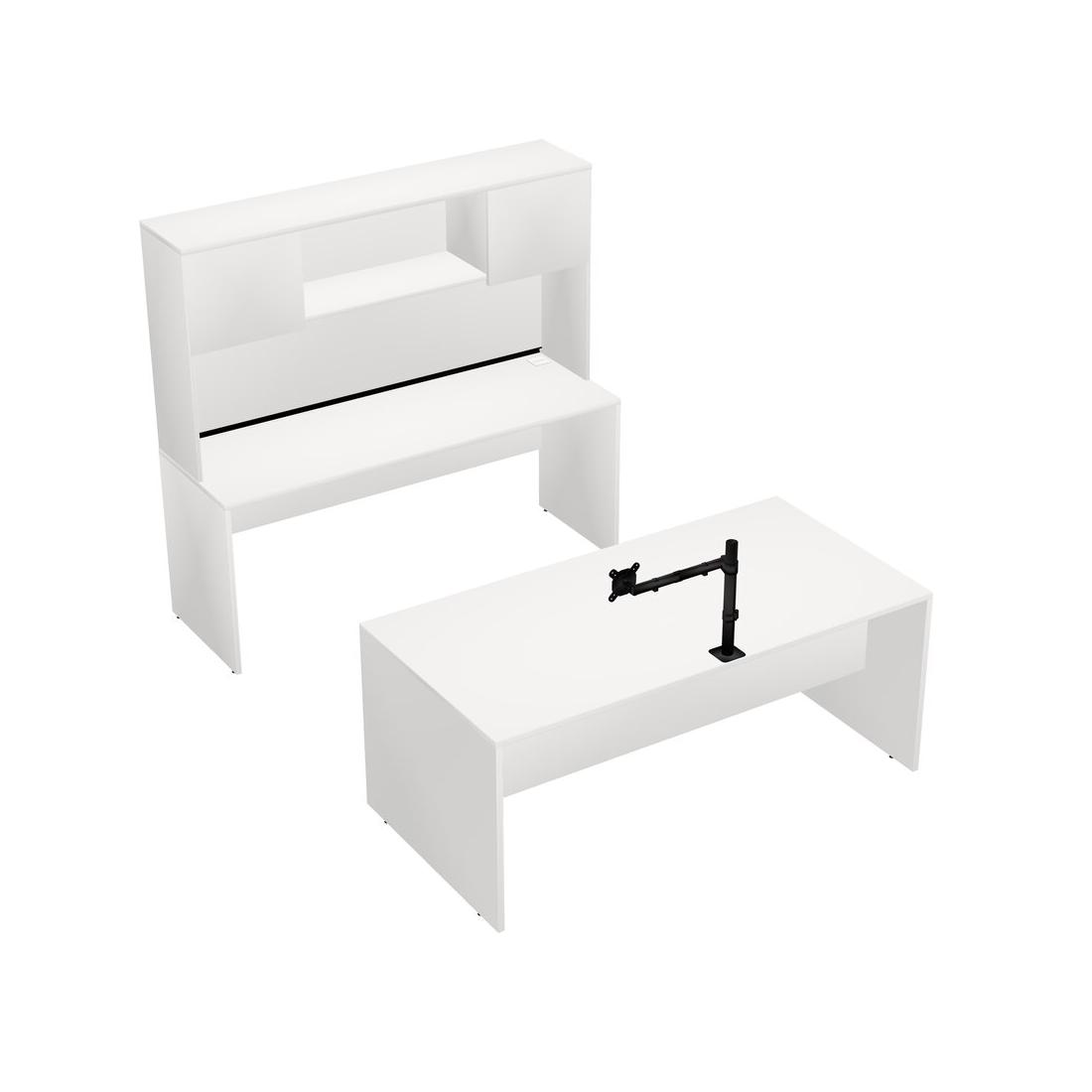 Office Parallel Desk Credenza Desk + Hutch + Monitor Arm (single Arm)