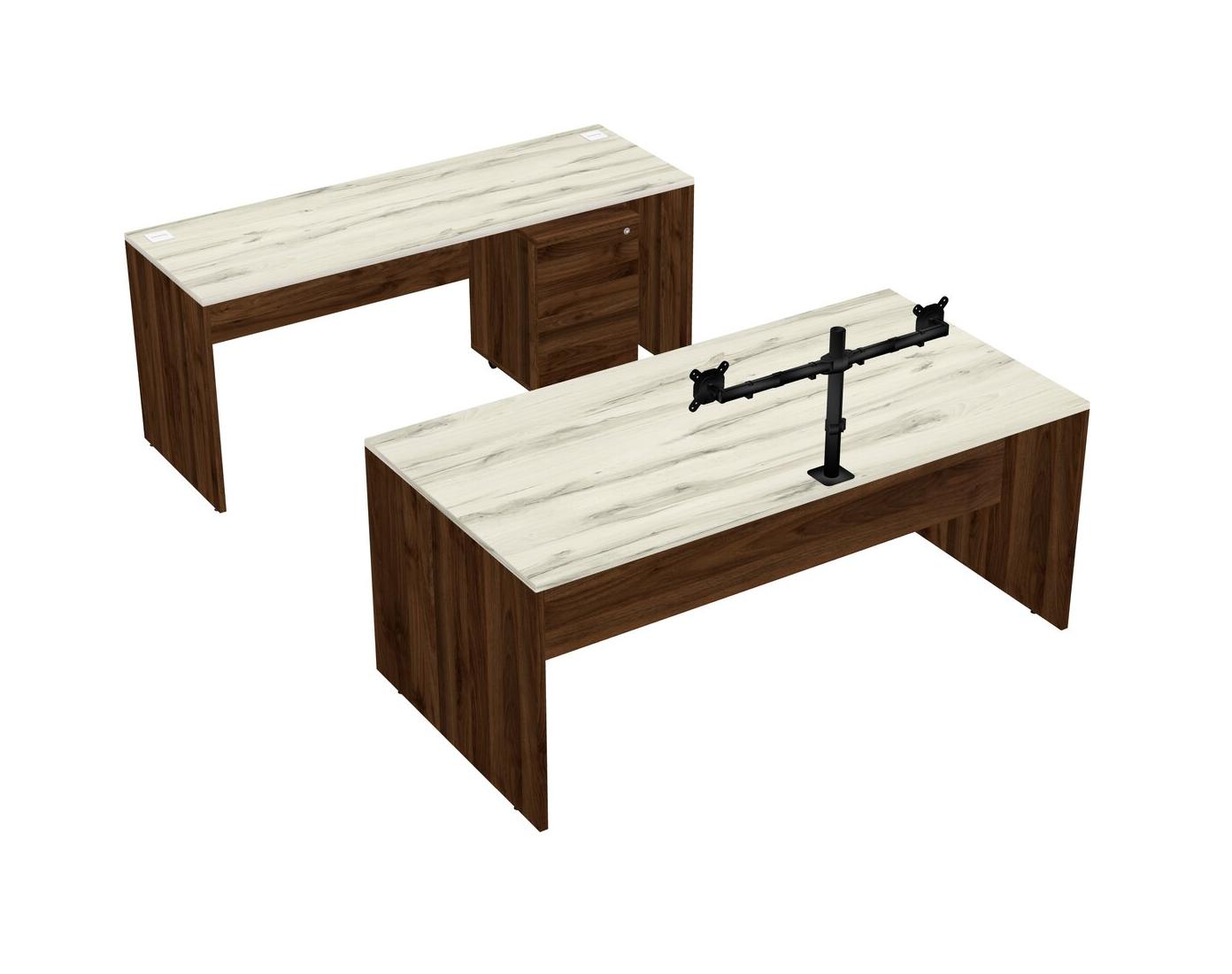 Office Parallel Desk Credenza Desk + Wooden Mobile Drawers + Monitor Arm (double Arms)