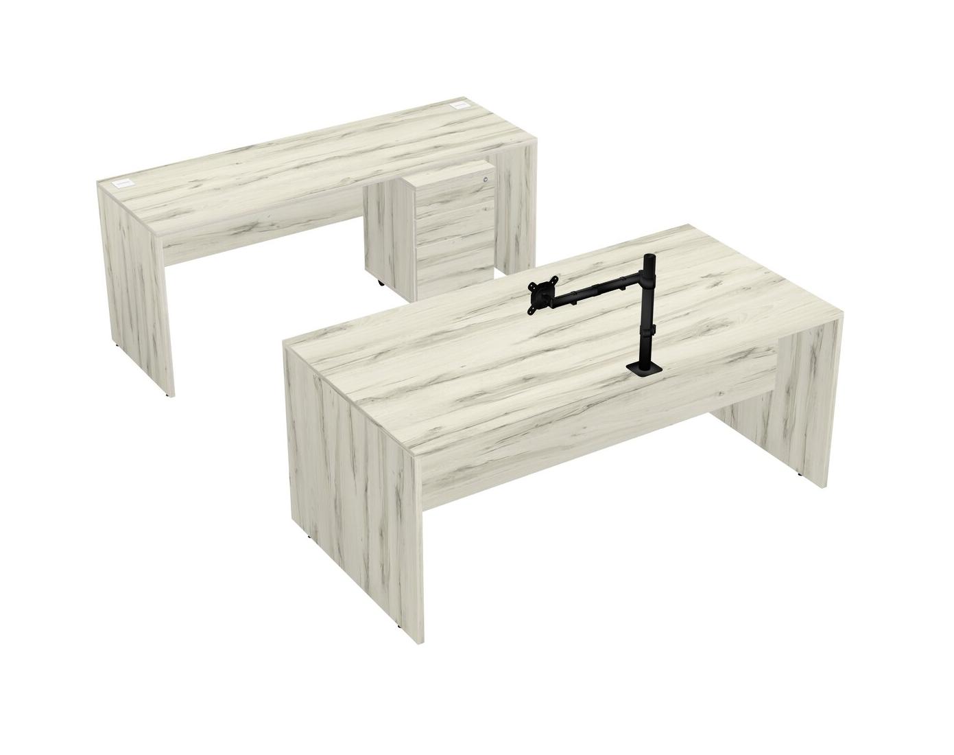 Office Parallel Desk Credenza Desk + Wooden Mobile Drawers + Monitor Arm (single Arm)