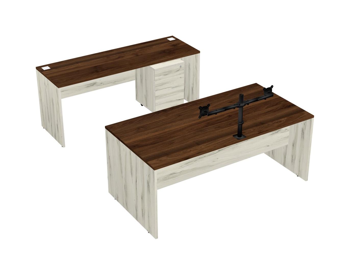 Office Parallel Desk Credenza Desk + Wooden Mobile Drawers + Monitor Arm (double Arms)