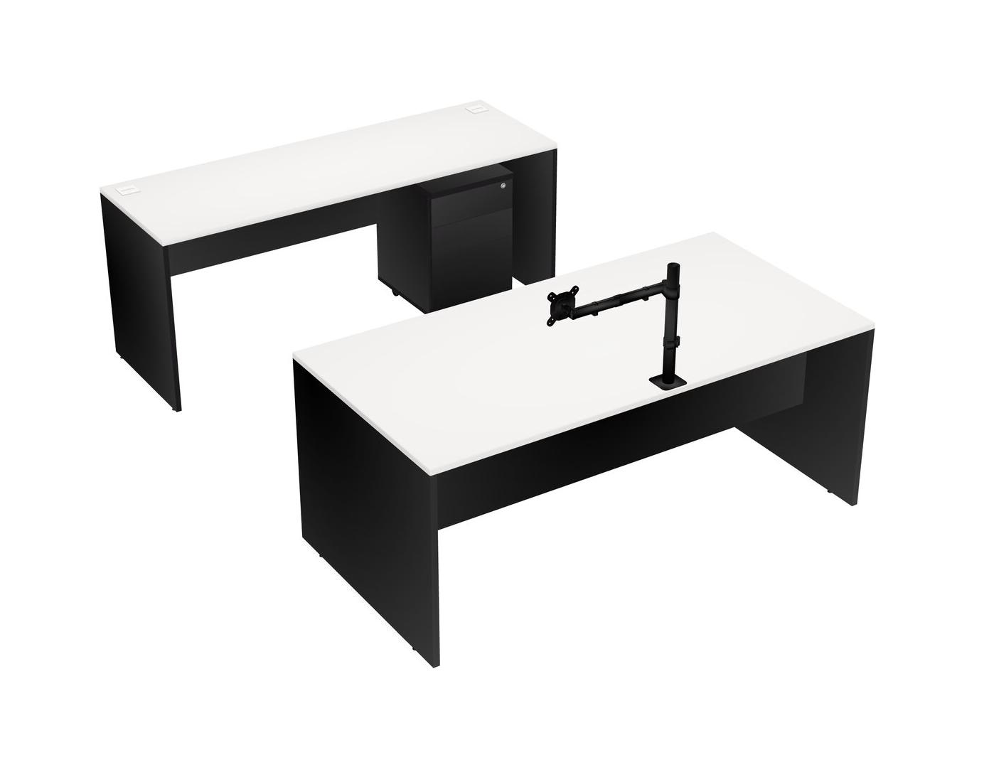 Office Parallel Desk Credenza Desk + Wooden Mobile Drawers + Monitor Arm (single Arm)