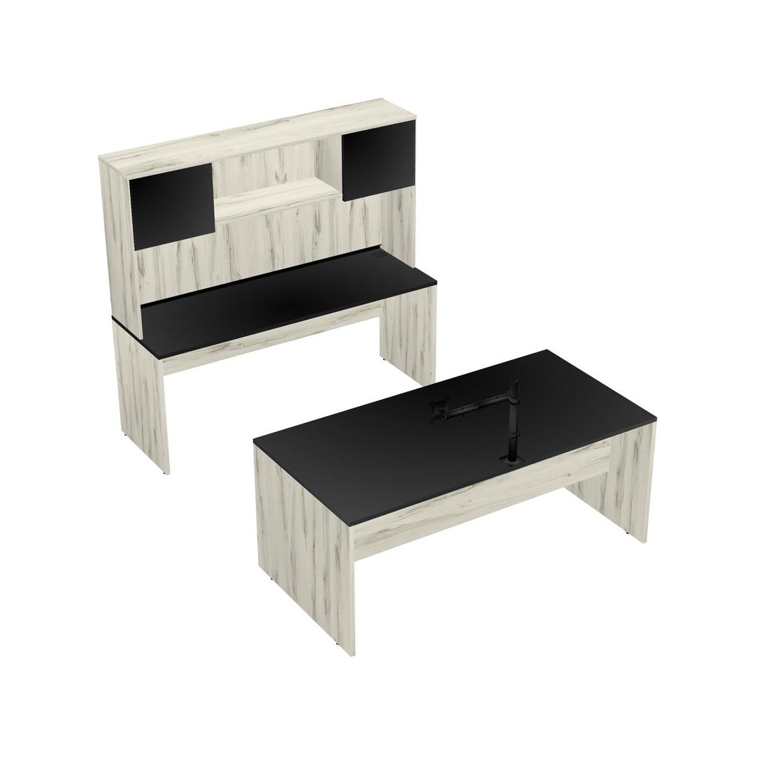 Office Parallel Desk Credenza Desk + Hutch + Monitor Arm (single Arm)