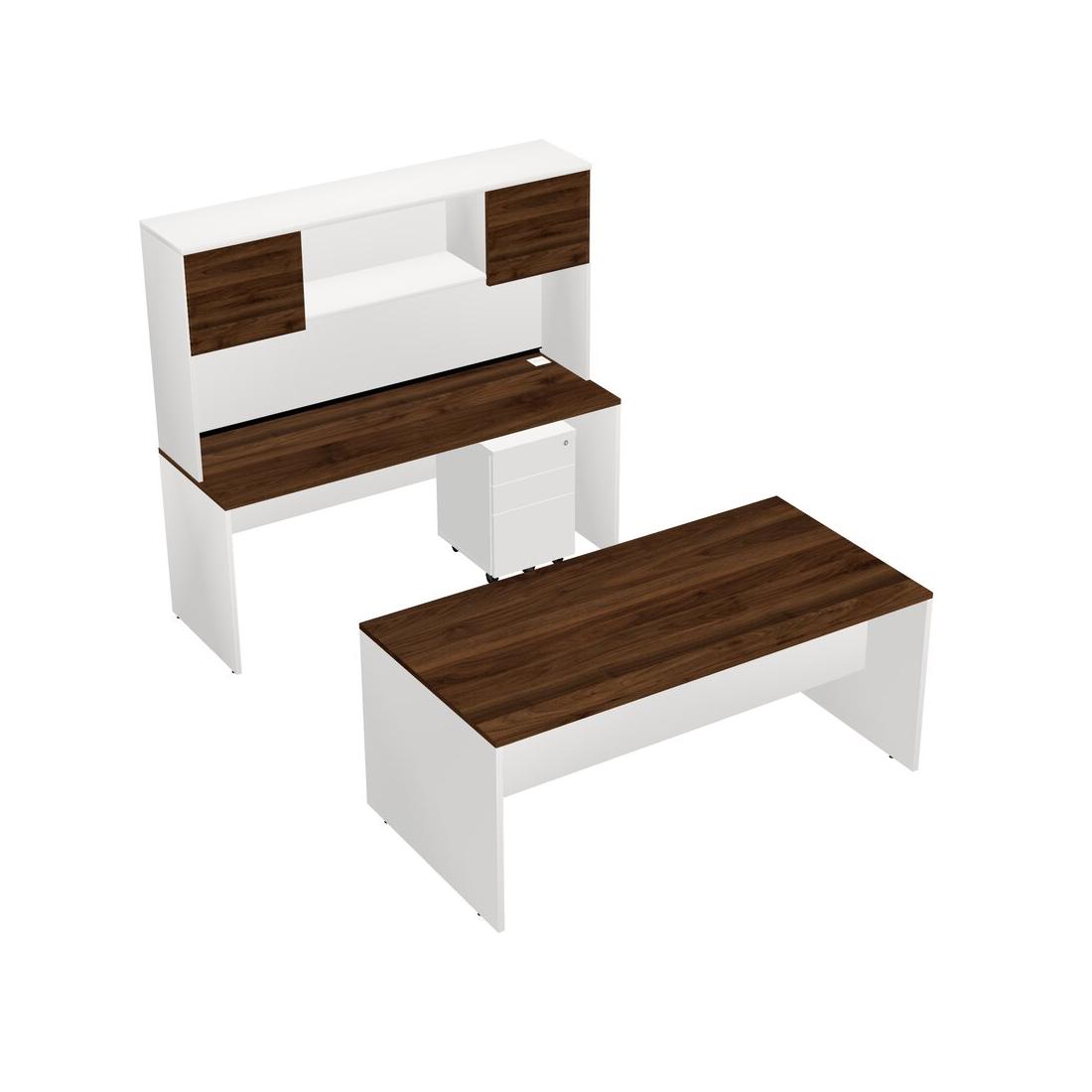 Office Parallel Desk Credenza Desk + Wooden Mobile Drawers + Hutch