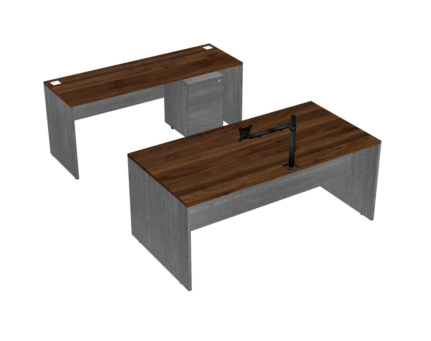 Office Parallel Desk Credenza Desk + Wooden Mobile Drawers + Monitor Arm (single Arm)
