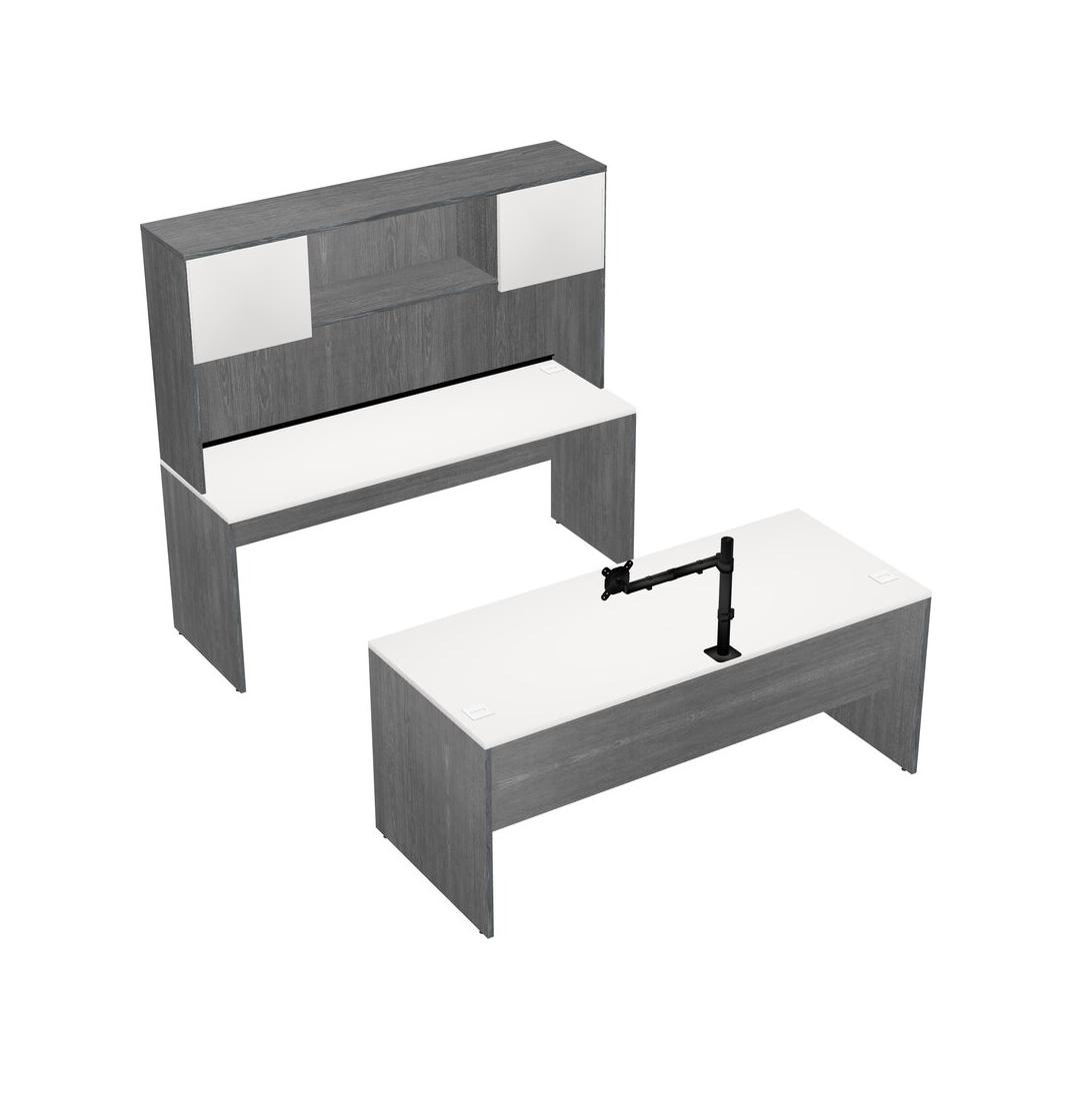 Office Parallel Desk Credenza Desk + Hutch + Monitor Arm (single Arm)