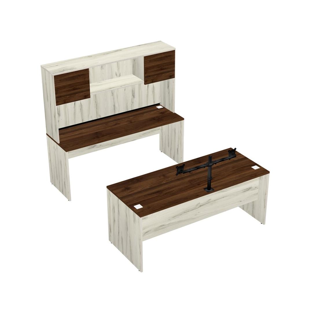 Office Parallel Desk Credenza Desk + Hutch + Monitor Arm (double Arms)