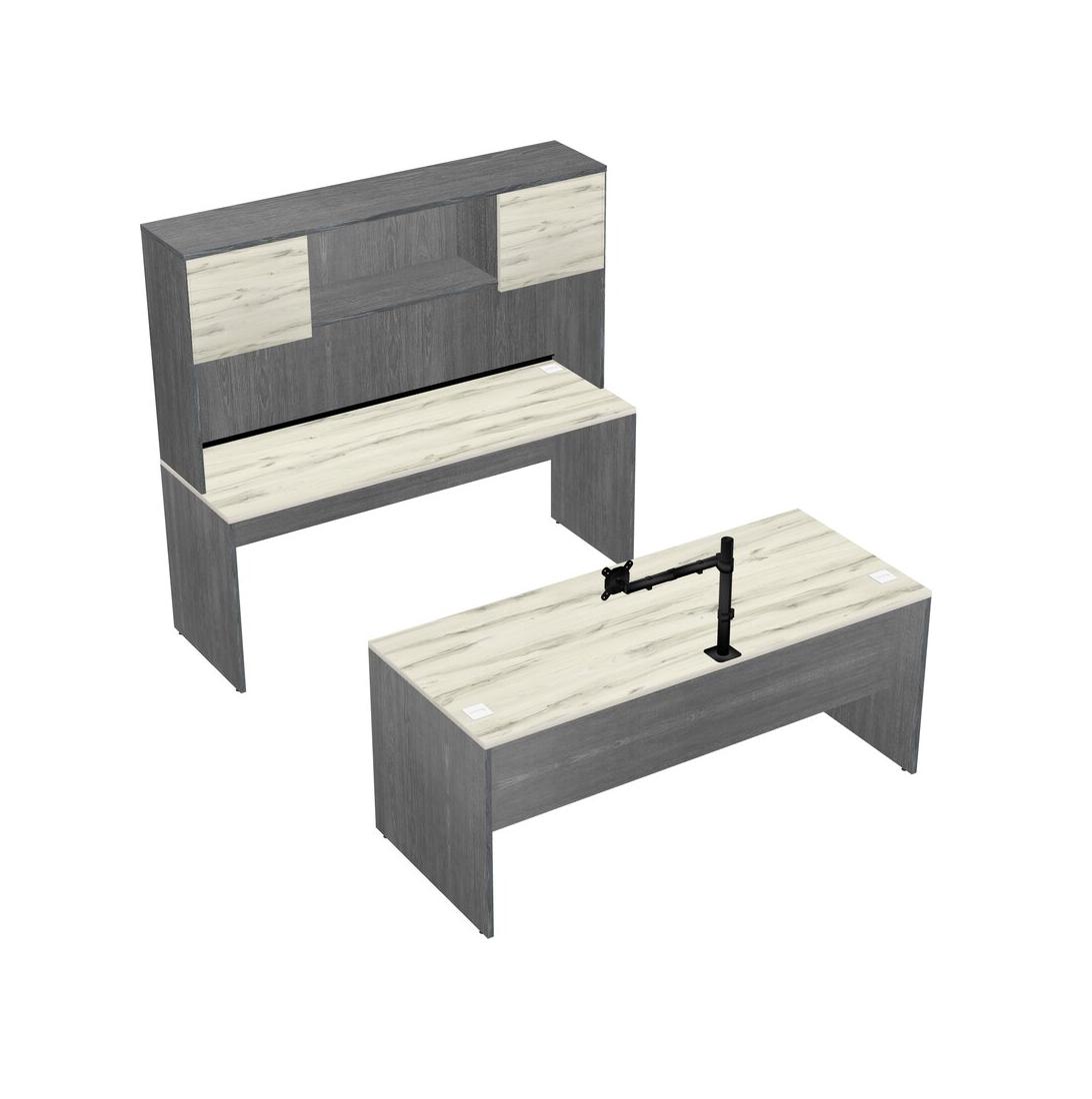 Office Parallel Desk Credenza Desk + Hutch + Monitor Arm (single Arm)