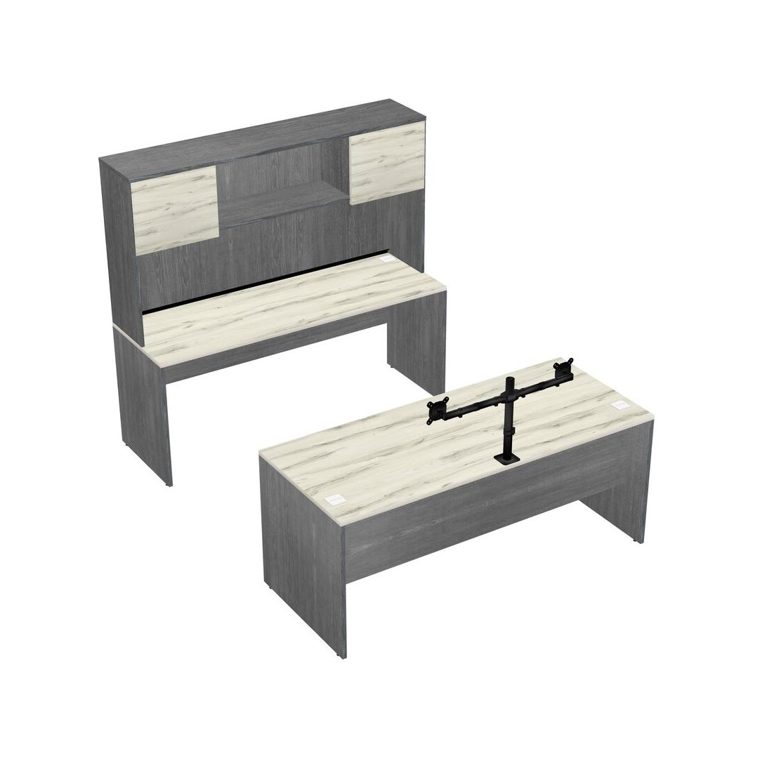 Office Parallel Desk Credenza Desk + Hutch + Monitor Arm (double Arms)