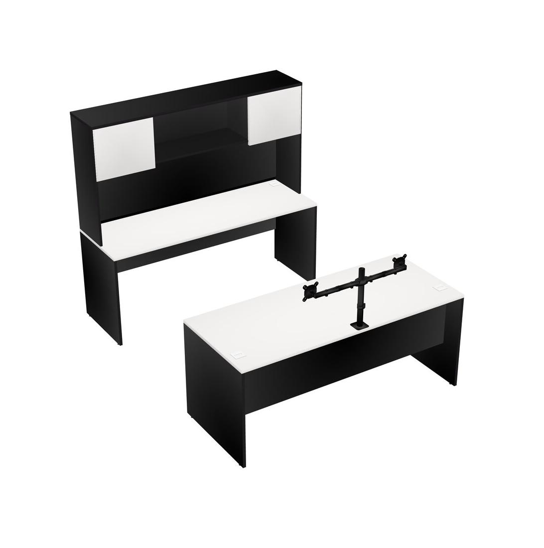 Office Parallel Desk Credenza Desk + Hutch + Monitor Arm (double Arms)