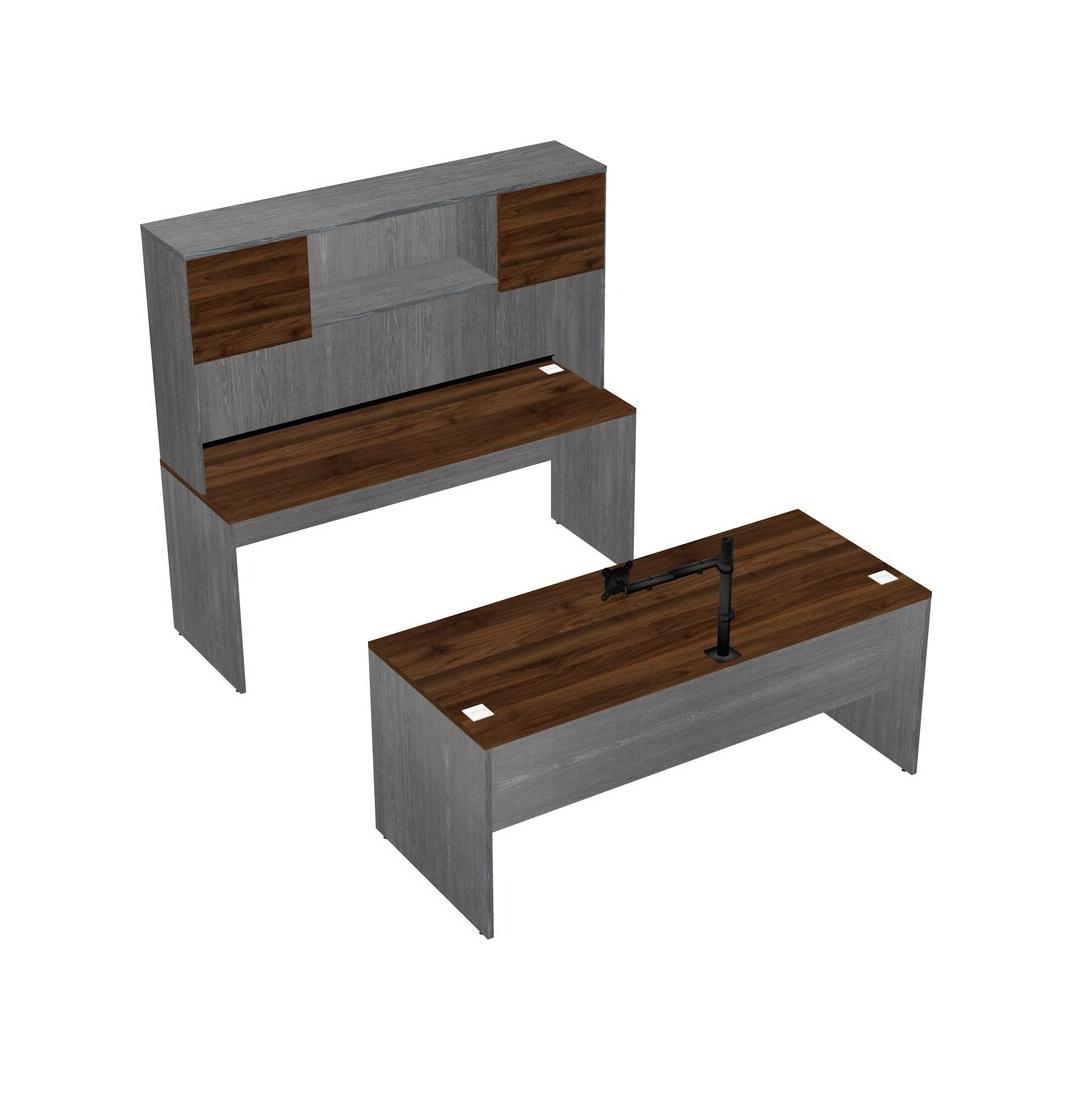 Office Parallel Desk Credenza Desk + Hutch + Monitor Arm (single Arm)