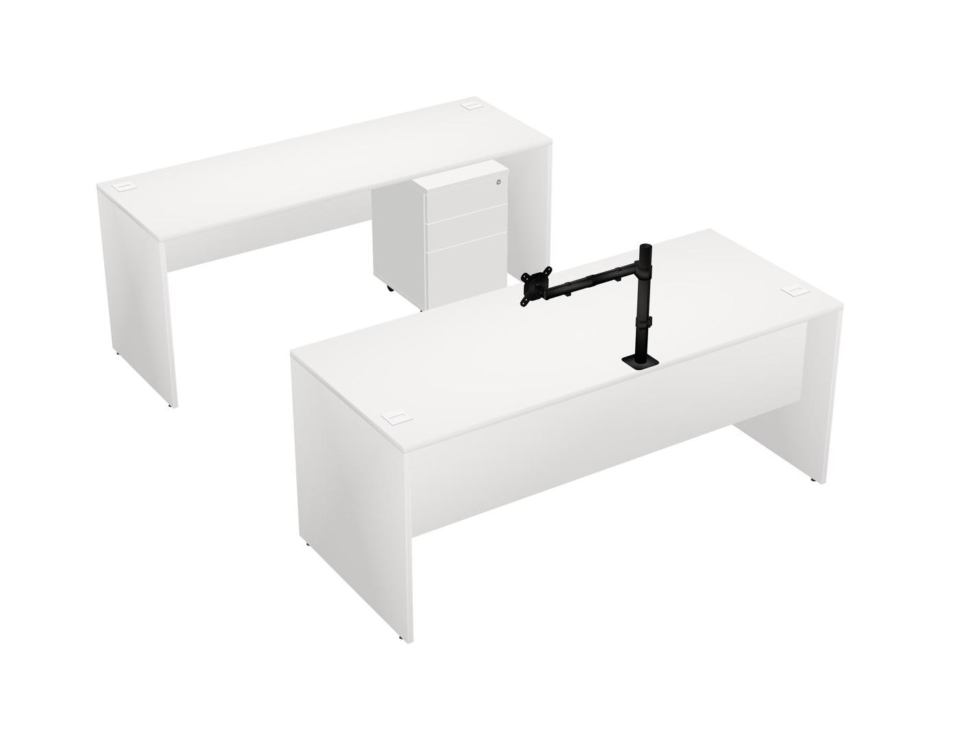 Office Parallel Desk Credenza Desk + Wooden Mobile Drawers + Monitor Arm (single Arm)