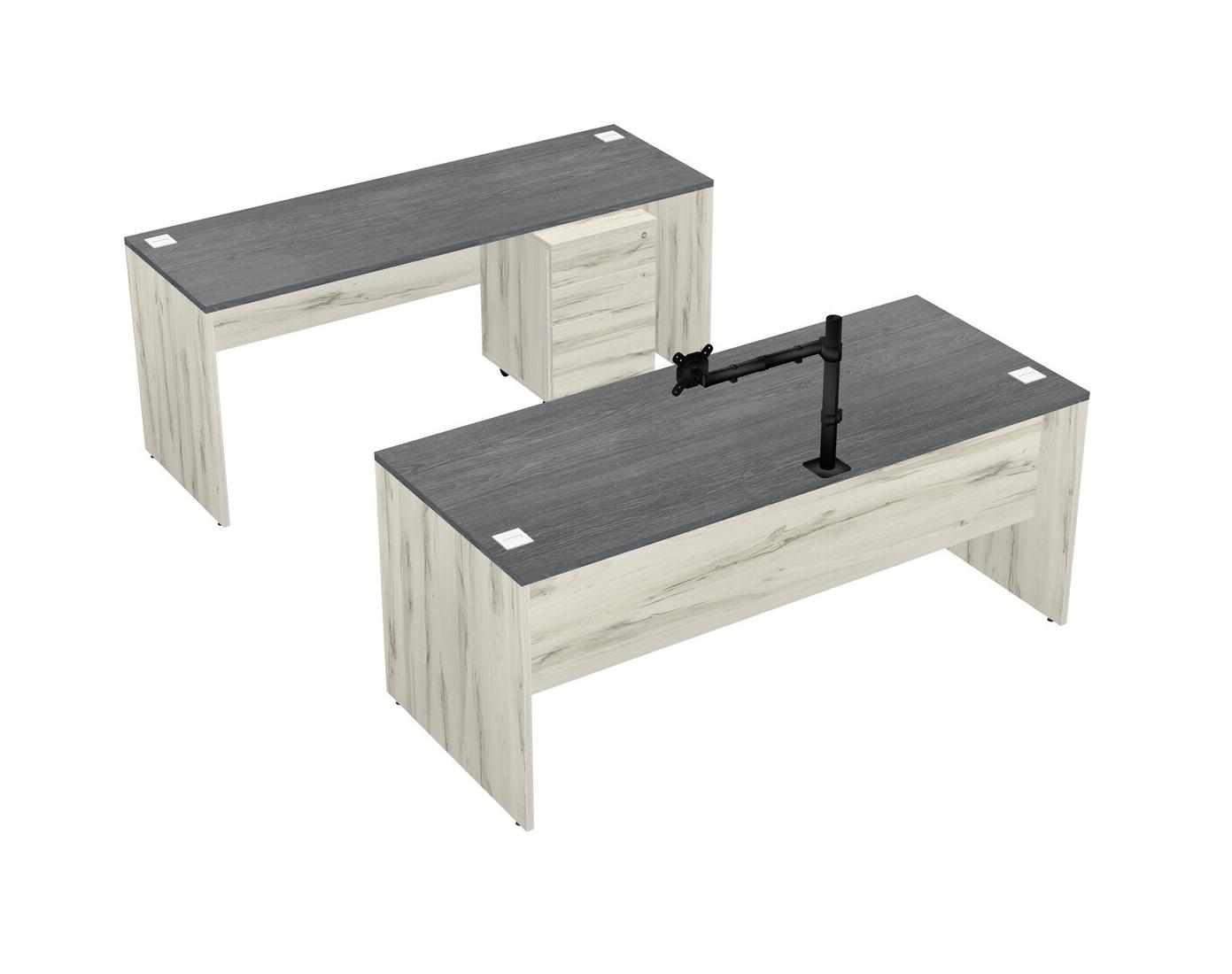 Office Parallel Desk Credenza Desk + Wooden Mobile Drawers + Monitor Arm (single Arm)