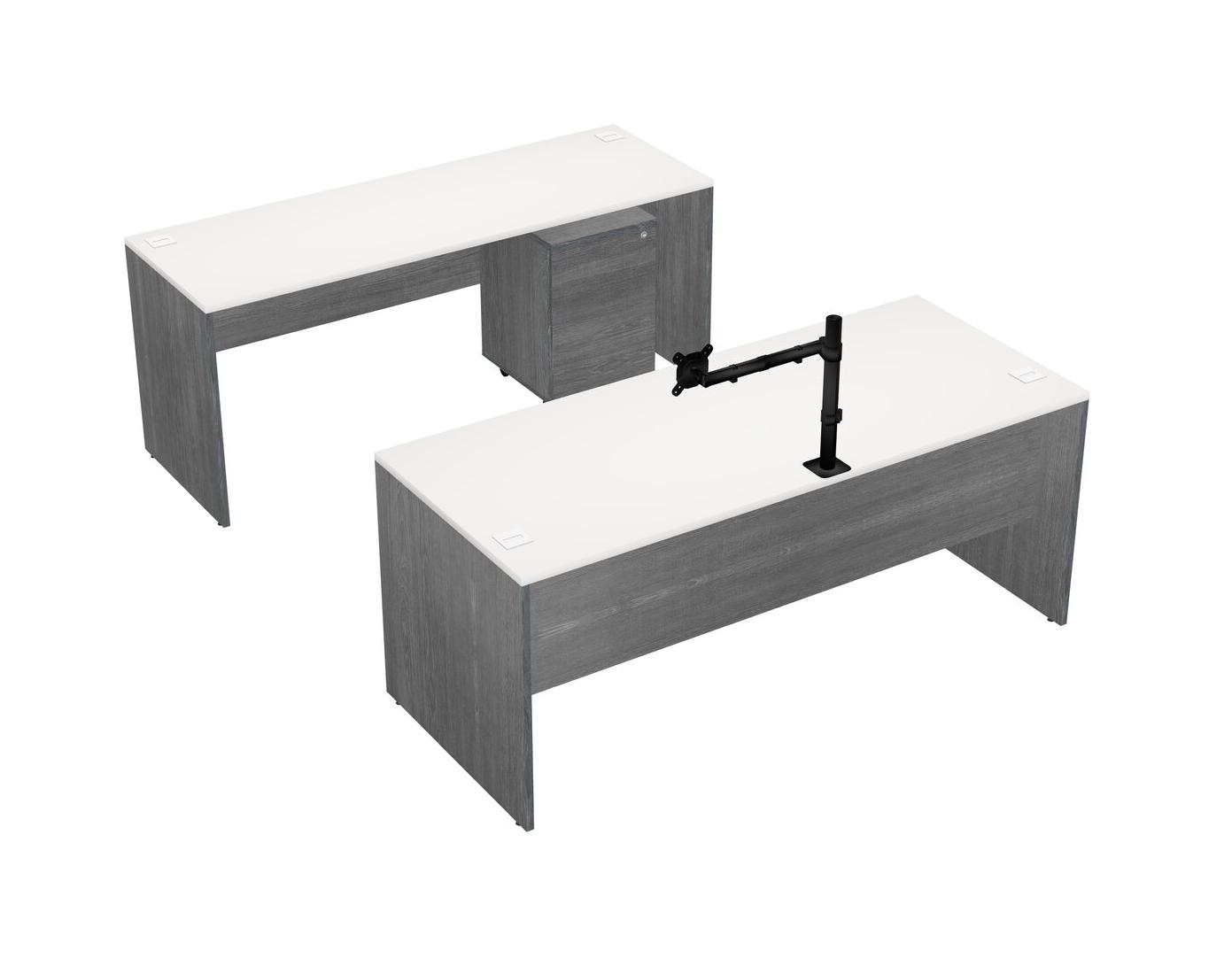 Office Parallel Desk Credenza Desk + Wooden Mobile Drawers + Monitor Arm (single Arm)