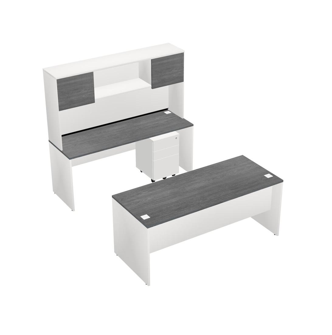 Office Parallel Desk Credenza Desk + Wooden Mobile Drawers + Hutch