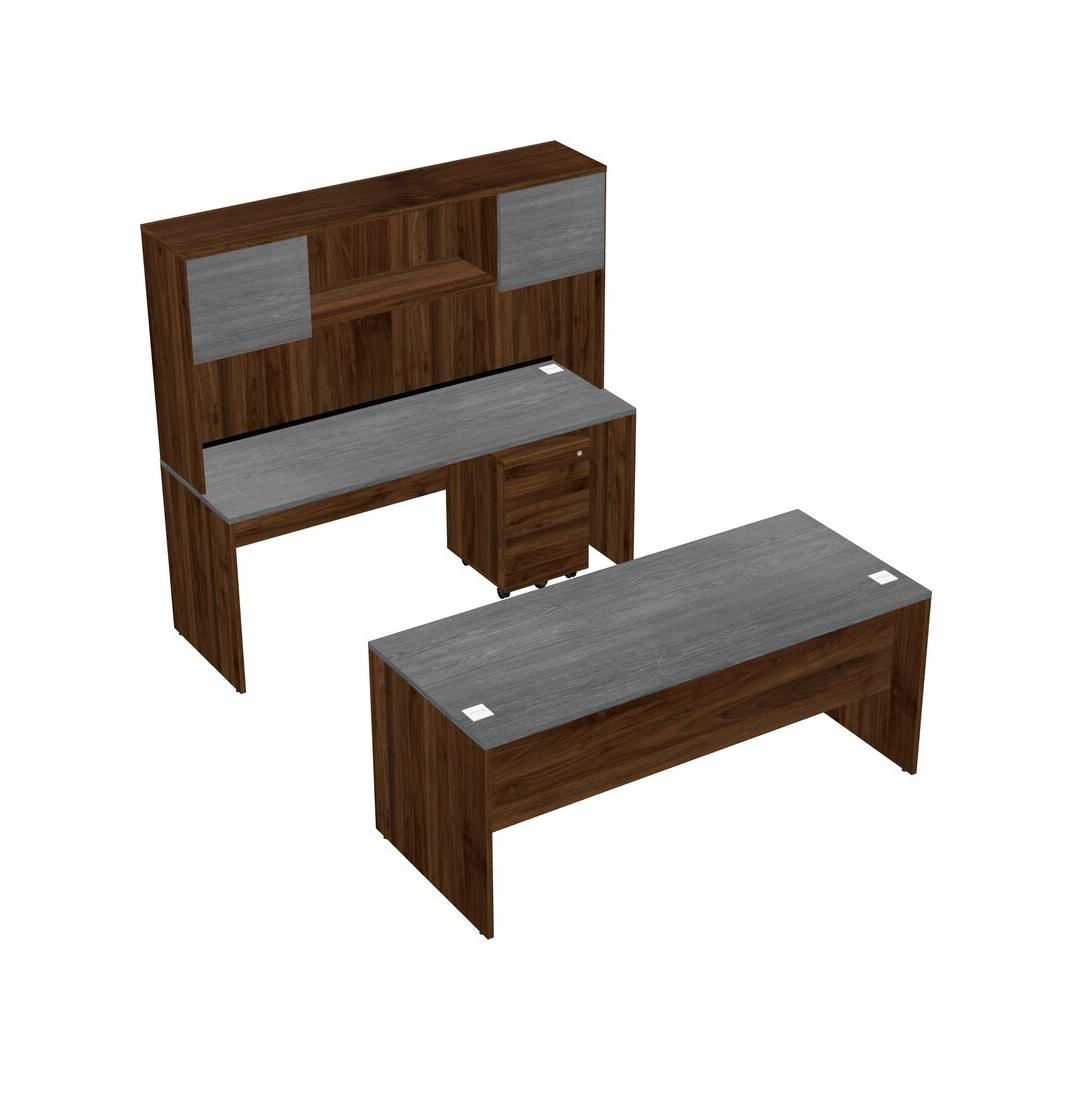 Office Parallel Desk Credenza Desk + Wooden Mobile Drawers + Hutch