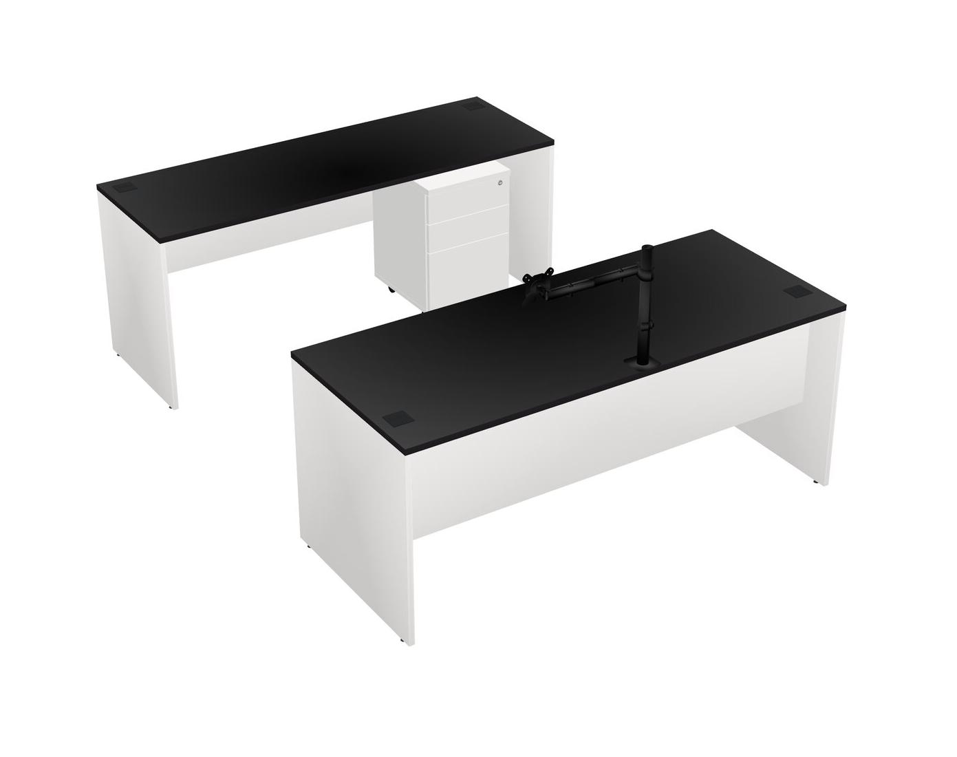 Office Parallel Desk Credenza Desk + Wooden Mobile Drawers + Monitor Arm (single Arm)