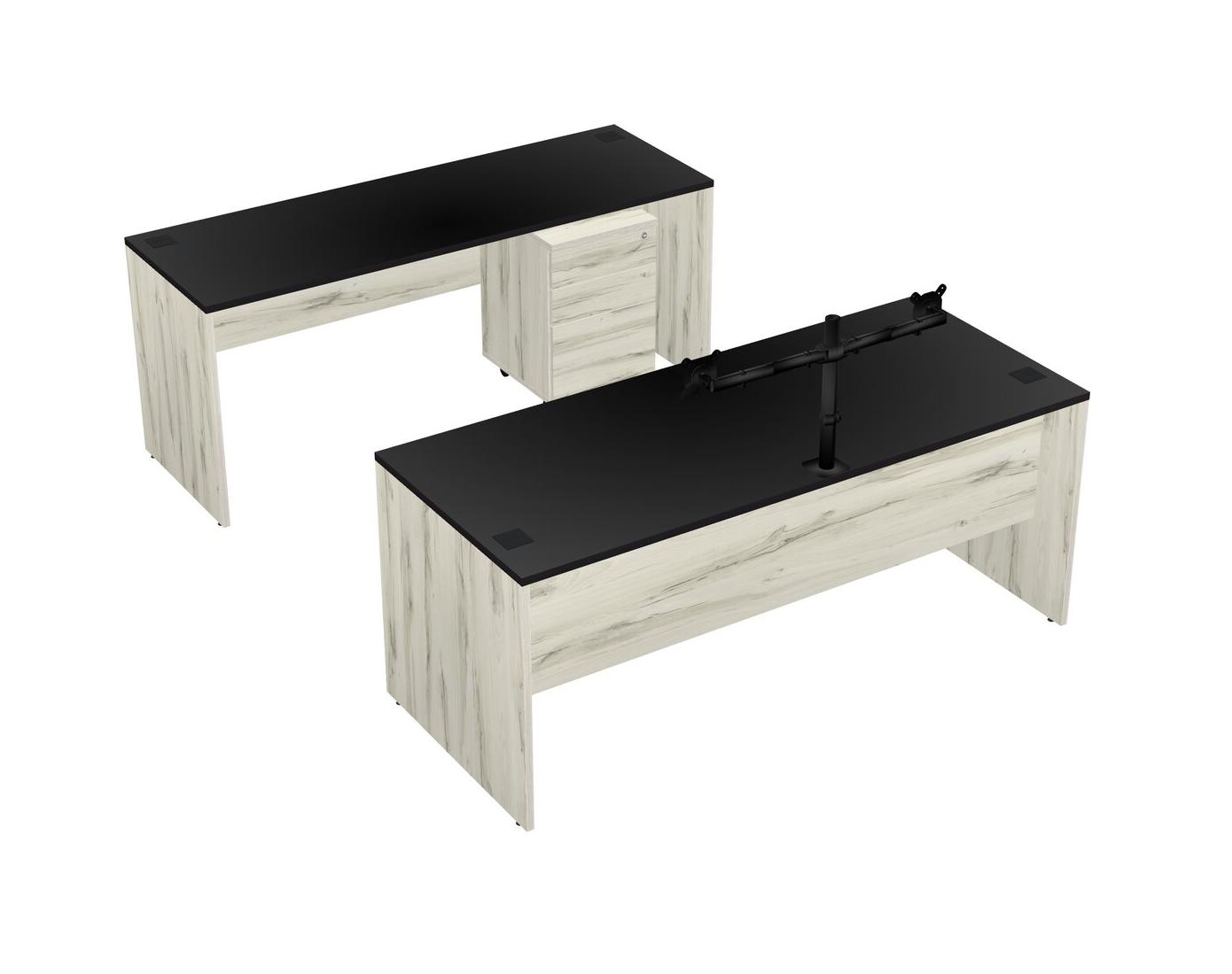 Office Parallel Desk Credenza Desk + Wooden Mobile Drawers + Monitor Arm (double Arms)