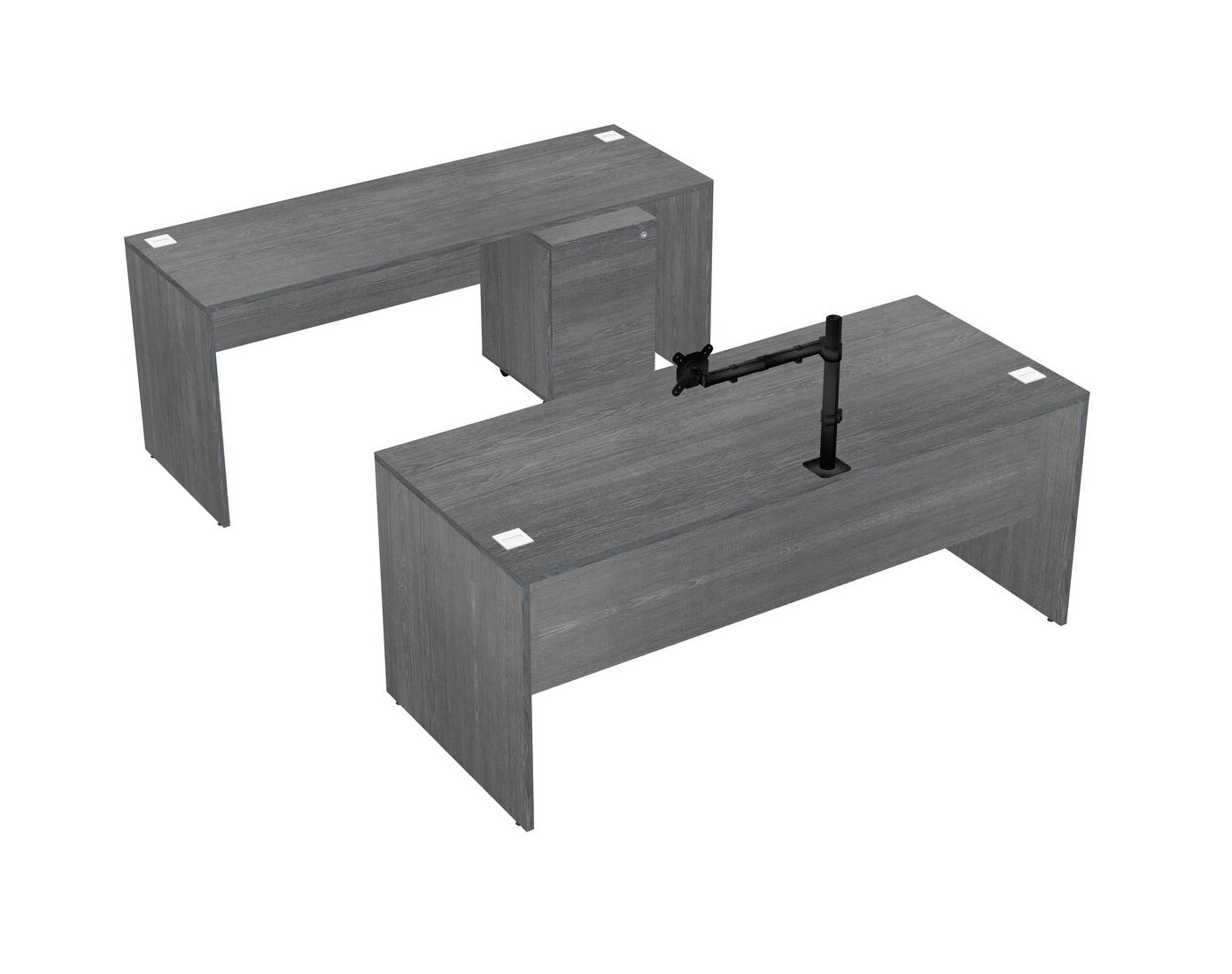 Office Parallel Desk Credenza Desk + Wooden Mobile Drawers + Monitor Arm (single Arm)