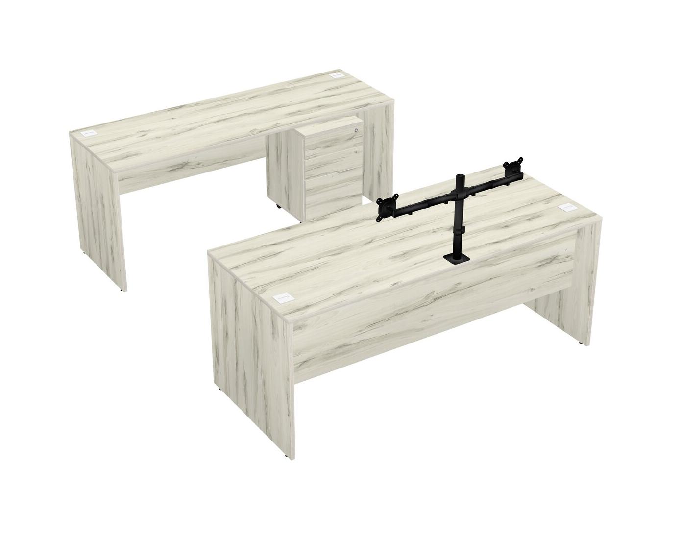 Office Parallel Desk Credenza Desk + Wooden Mobile Drawers + Monitor Arm (double Arms)