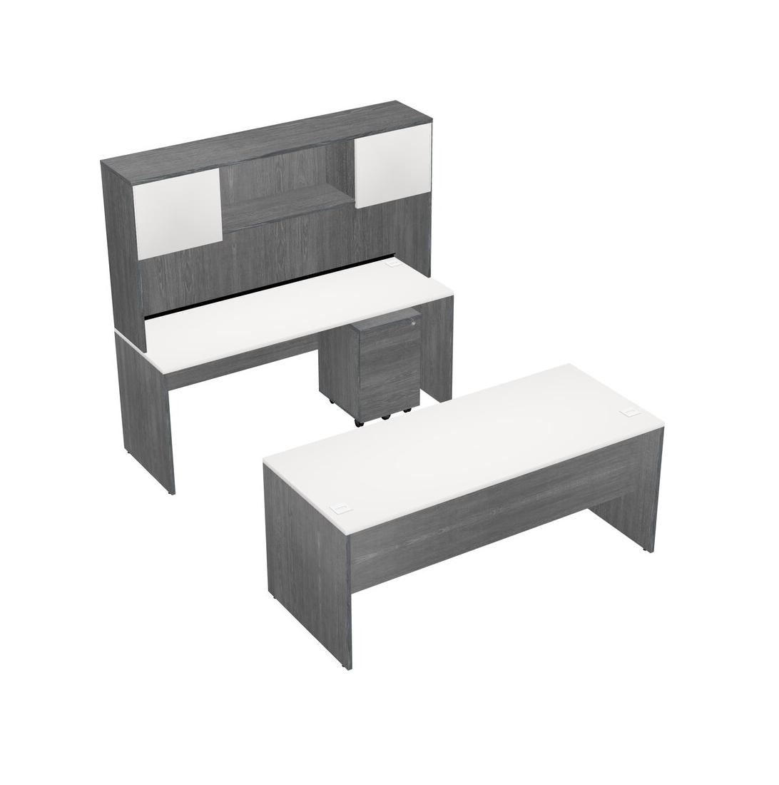 Office Parallel Desk Credenza Desk + Wooden Mobile Drawers + Hutch